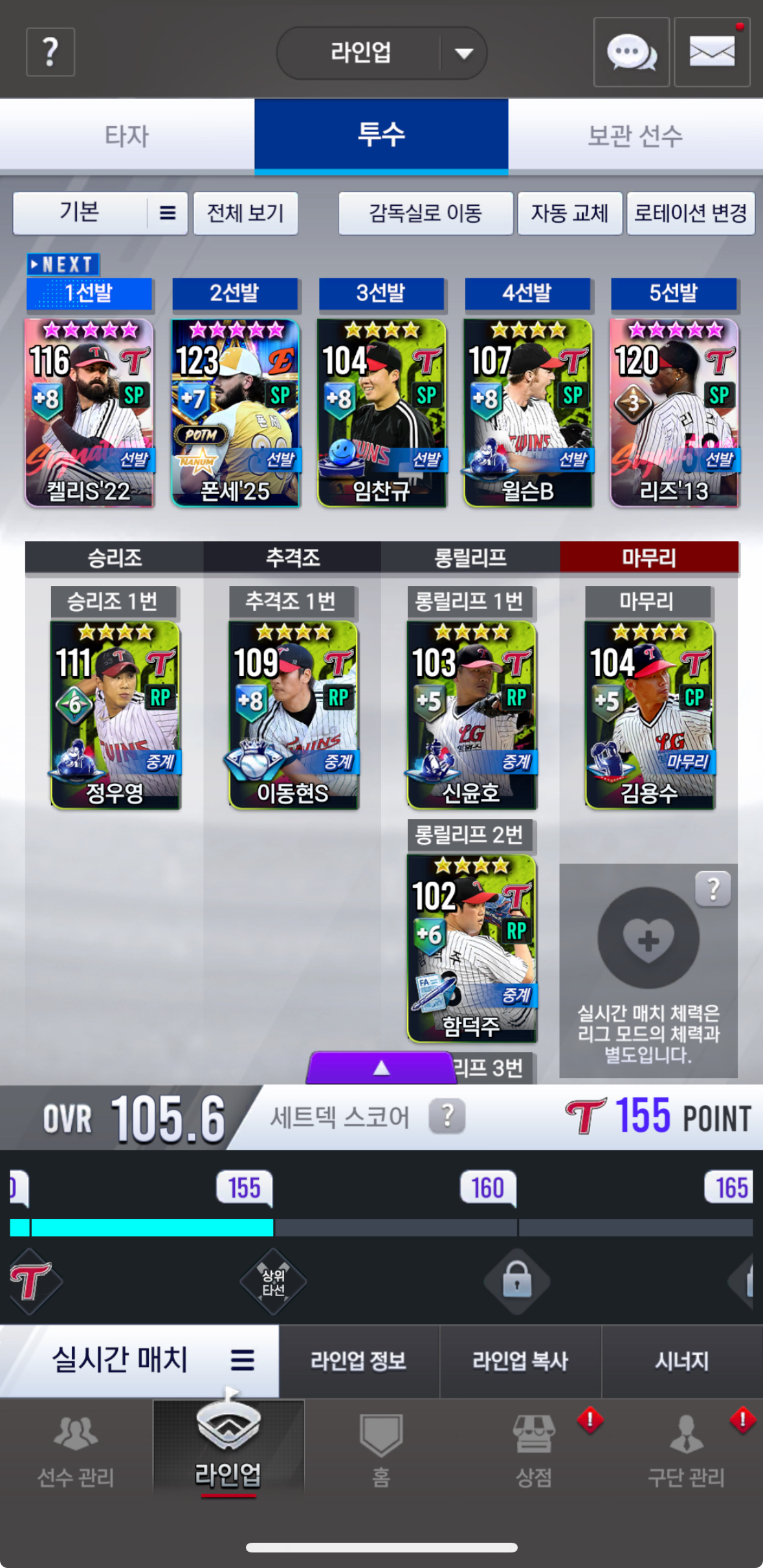 선발 아직 안 키운 거 94 이상훈이랑 얼리 치리노스 있습니다 분메 임찬규는 3각 가능