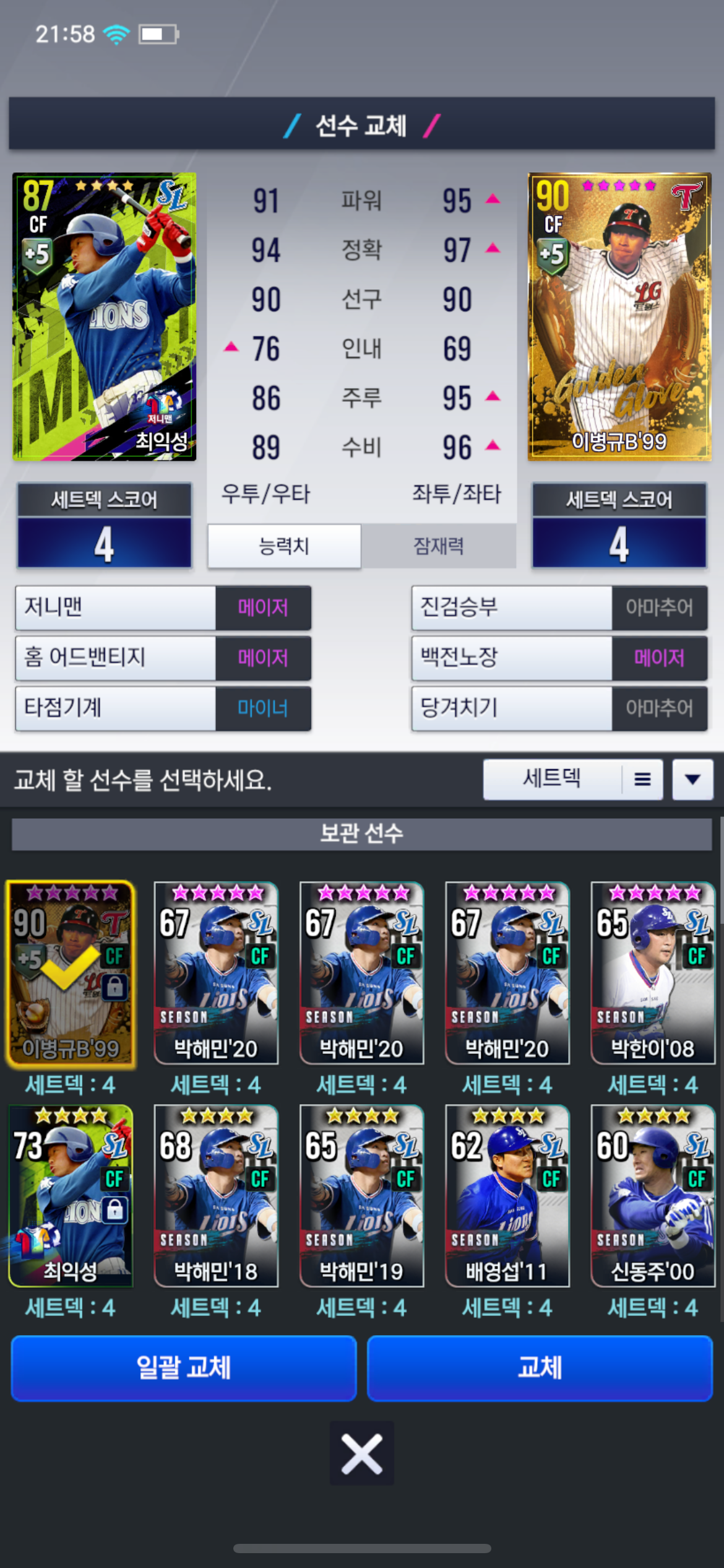 져니맨 최익성 쓰고 있는데 골 99 이병규가 떠서 뭘 키울지 고민입니다.
