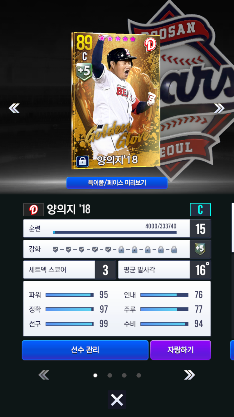 덱상황이 이래서 쓰질못하겠네요 ㅋㅋ 관상용으로 직행인가 아까워서 특밥은 못하고 있다…..지명자리는 양의지로 정해져있고 …ㅎ