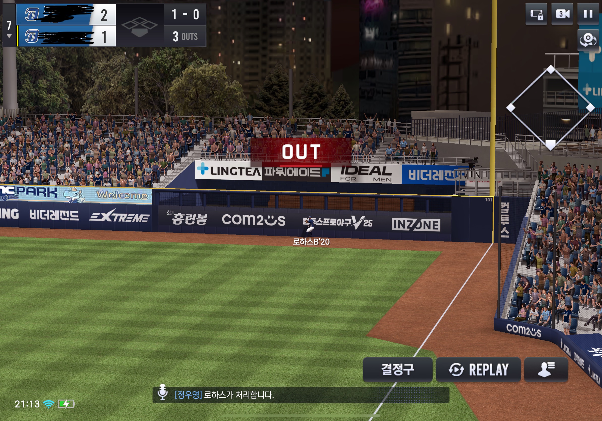 사진 순서대로 테런스,나성범이 아웃이되어 2아웃인 상황에서 2번째사진과 같이 박민우가 뜬볼을 쳐 3아웃이 됬는데