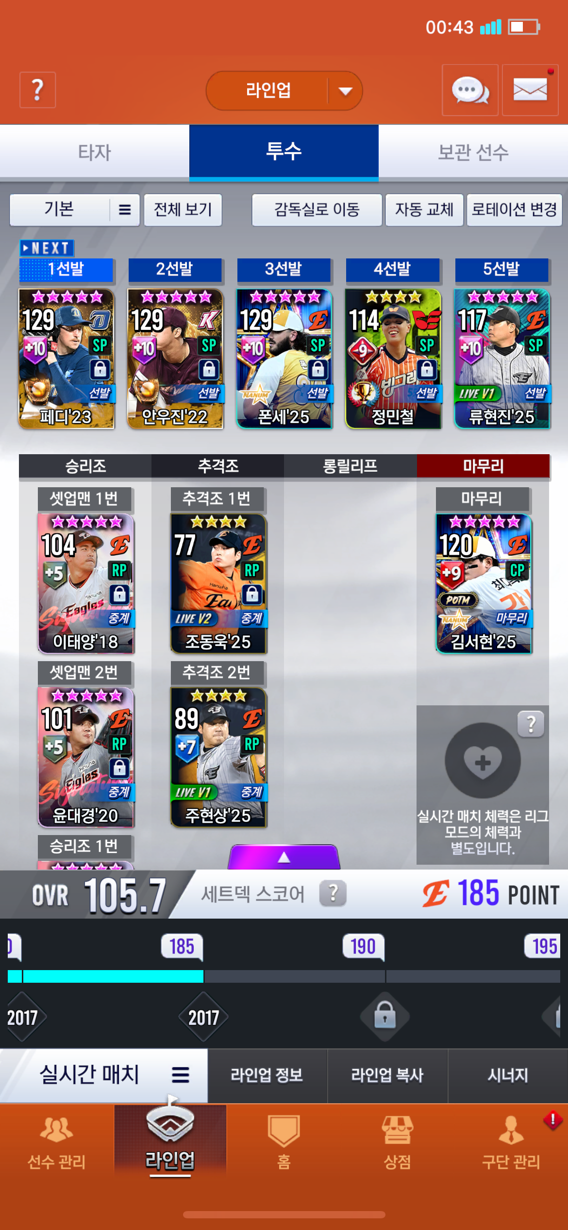 덱이 이상태인데 자팀골글 투수류현진 아님 00송지만아님 다른타자중에 추천 할만한 선수있나요… 무-소과금입니다 전지훈련 한가위만질렀어요..
