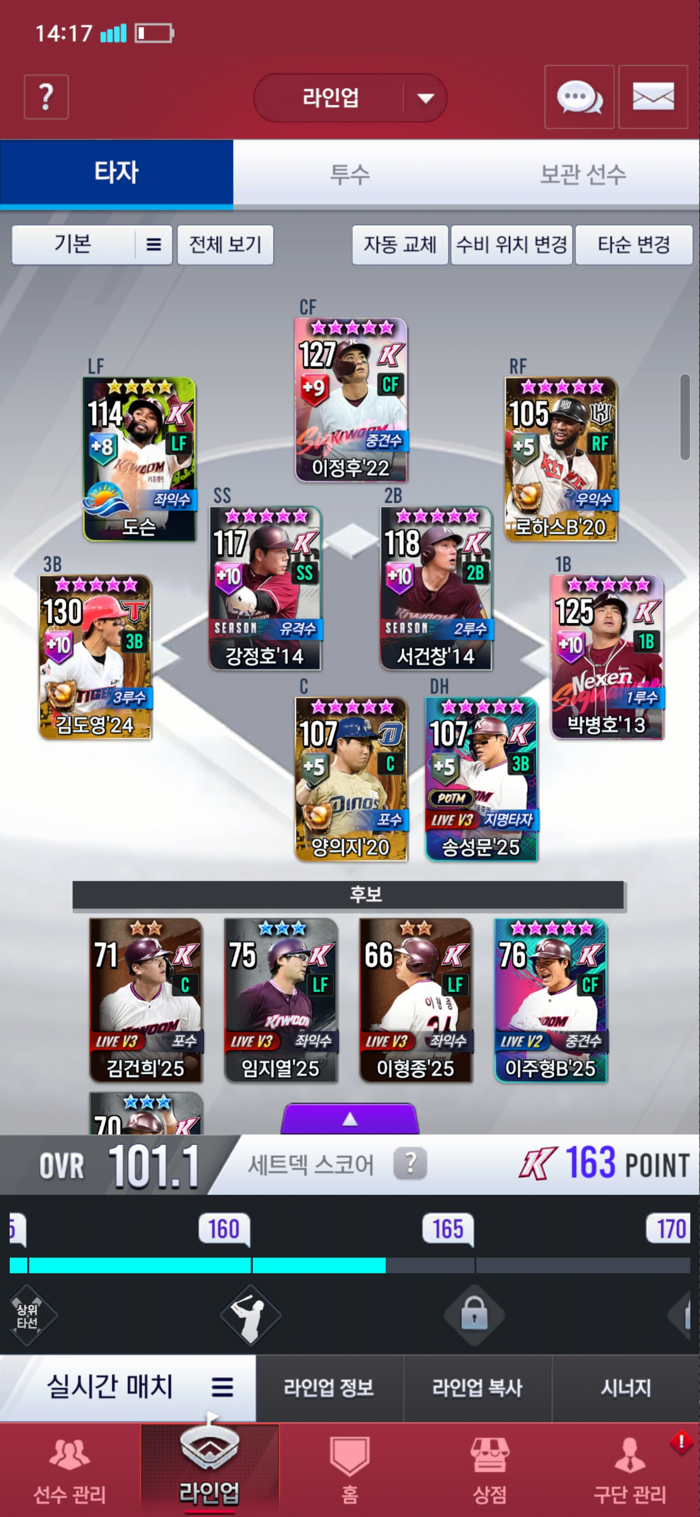 골글이 20의지 20로하스 이렇게 나와서 지타에 시그 20형우 fa해서 쓰고 좌익수에 18골재환이나 20골현수 이렇게 할려고하는데 괜찮나요?
