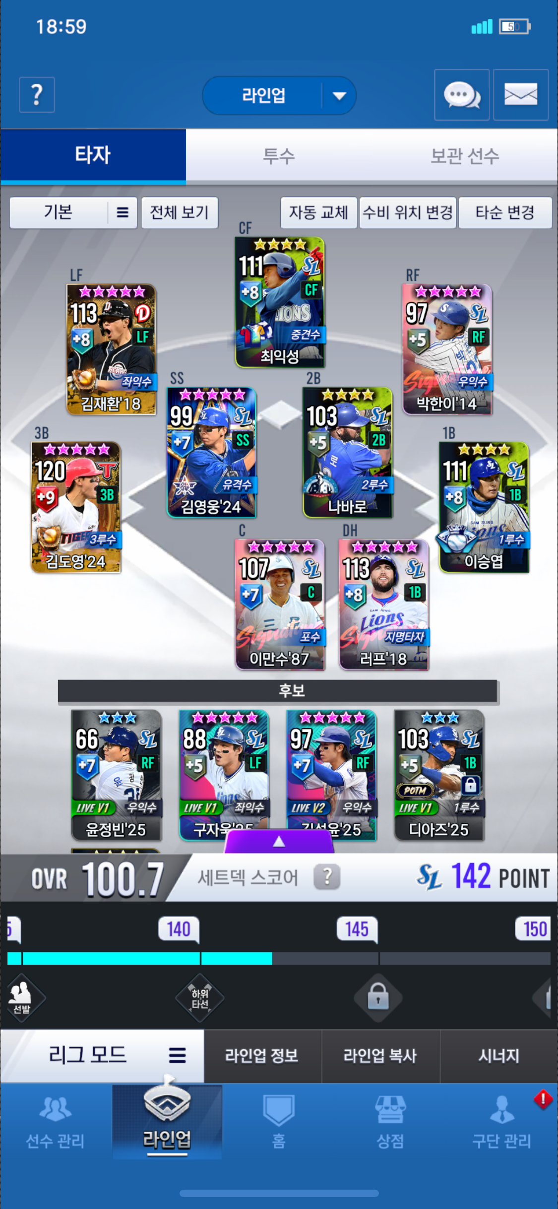 김도영 9카 25훈련이 있는 상황에 17최정을 뽑았는데 바꿔야 하나요? 팀은 이렇습니다
