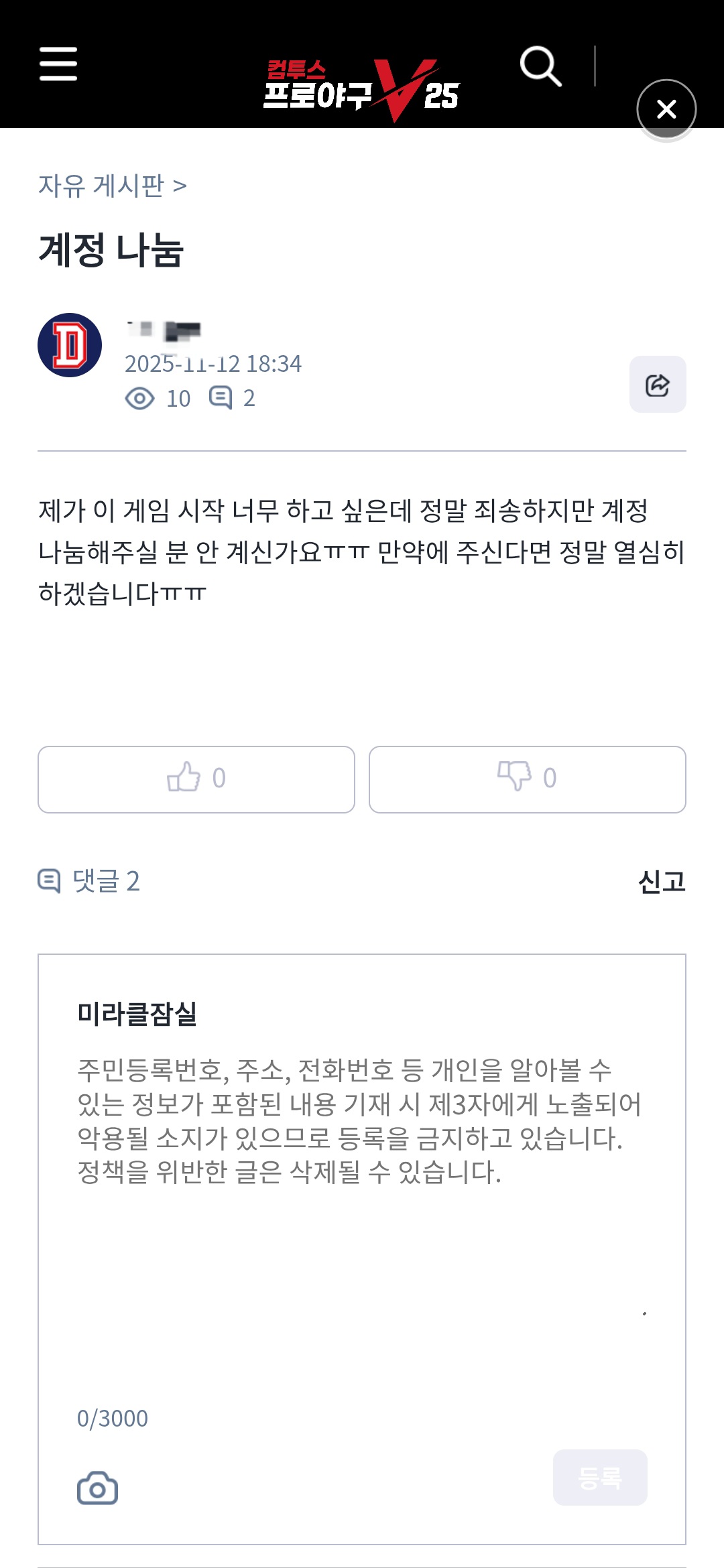 누가 커뮤에 계정 나눔해달라는 글을 올렸는데