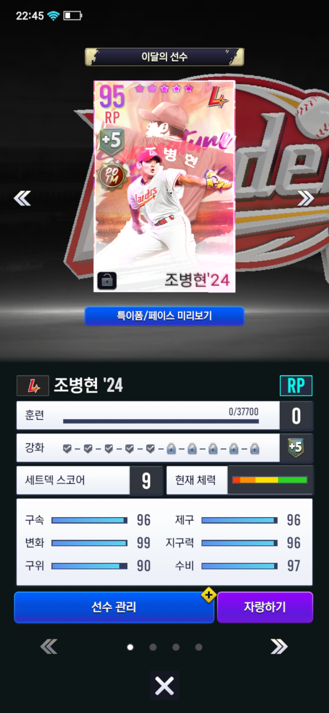 와 ㄷㄷ 무려 조뱅을 뽑았습니다 ㅠㅠ 30세이브 쓱 마무리 투수 고트를 18로맥? 그딴건 필요 있습니다 그간 2년동안의 고생의 열매가 드디어 피었네요
