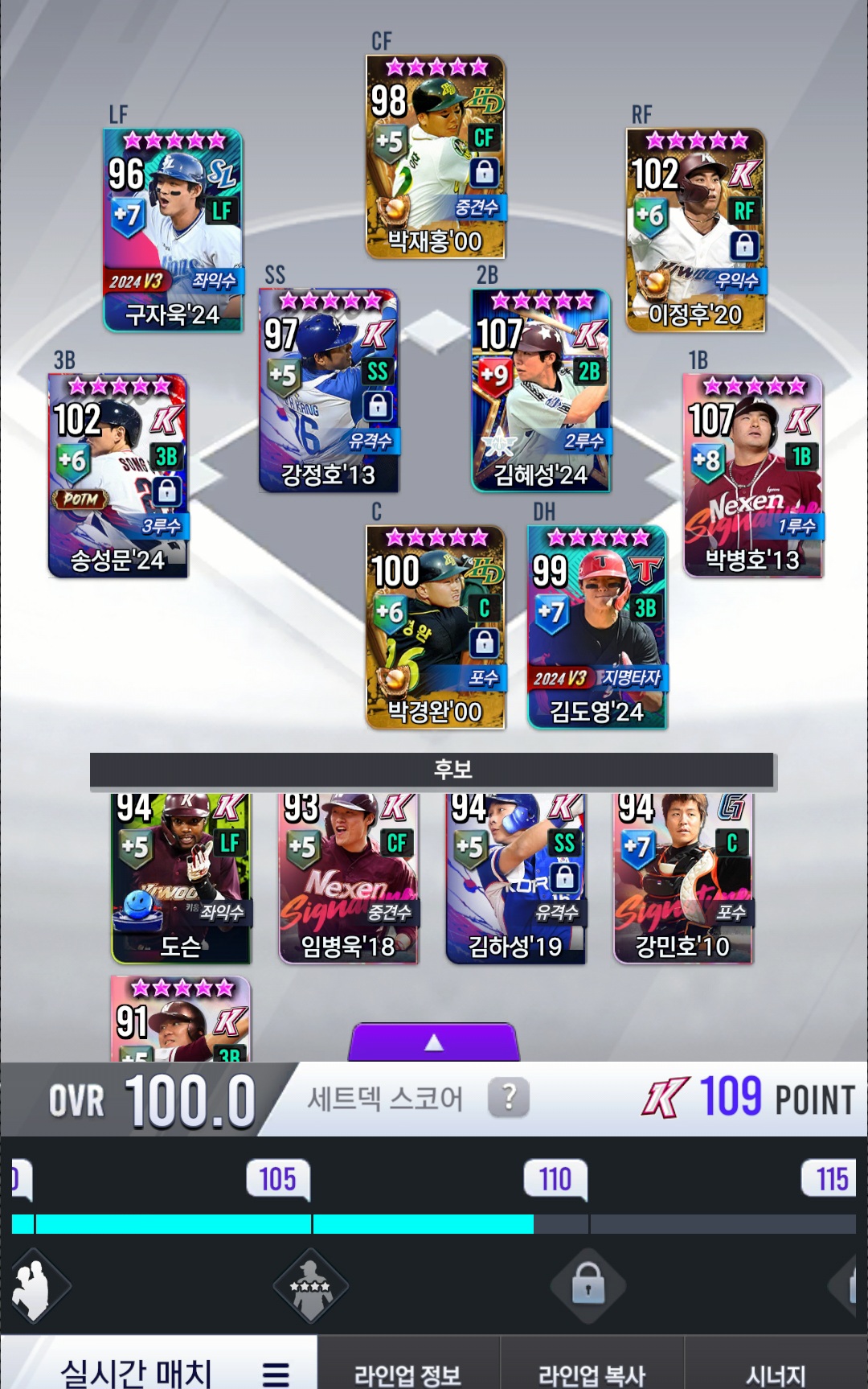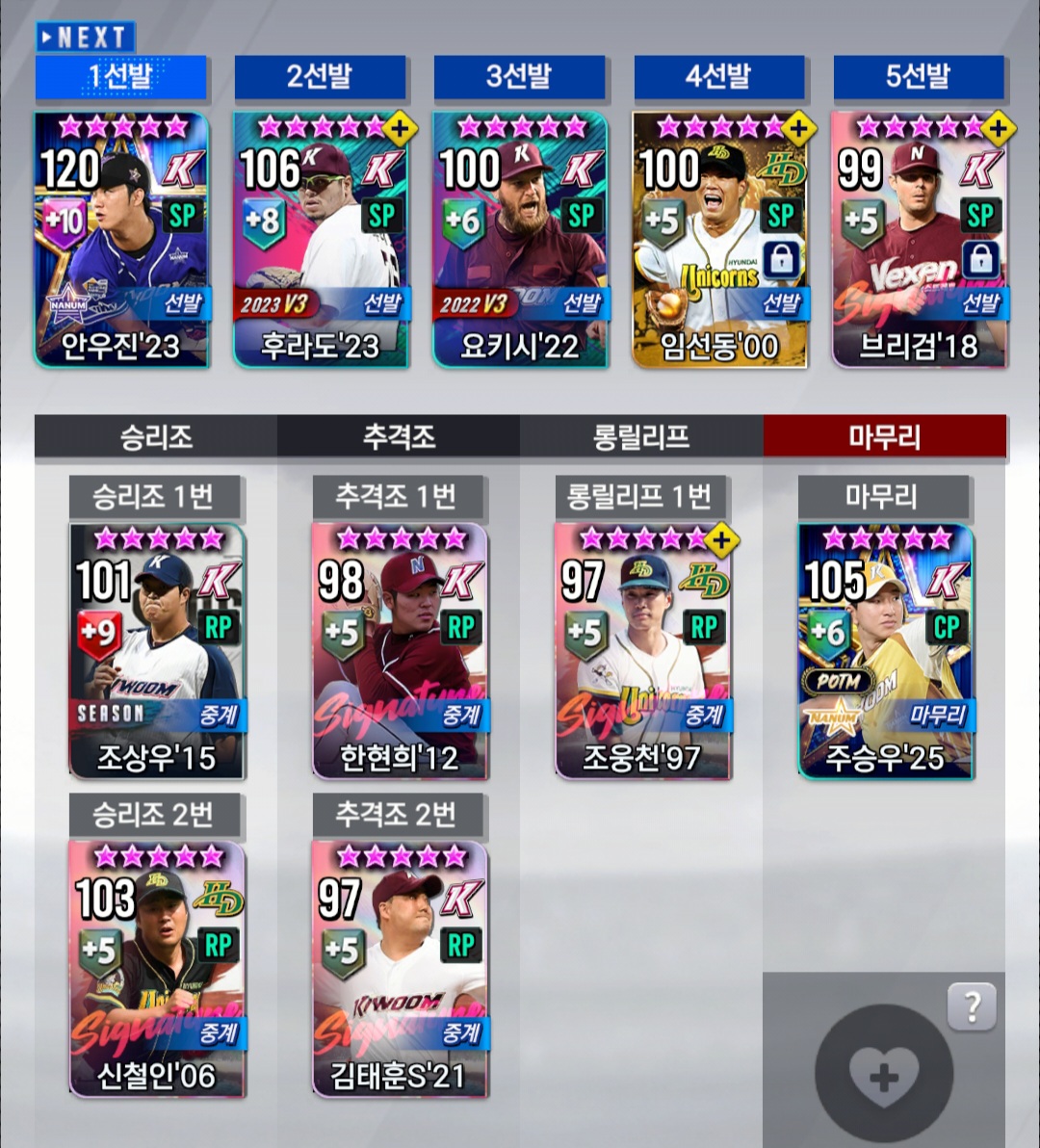 사진이 현재 제 라인업이고요,골글 17최정, 골글 18안치홍(보류) 이 상황인데 이 둘로 재영입을 해야하나요?? 08 시그 장원삼(등록시 ovr 98)이 있어서 00 임선동은 뺄 수는 있는데 어떻게 해야하나요?? 아니면 다른 방법이 있는지…