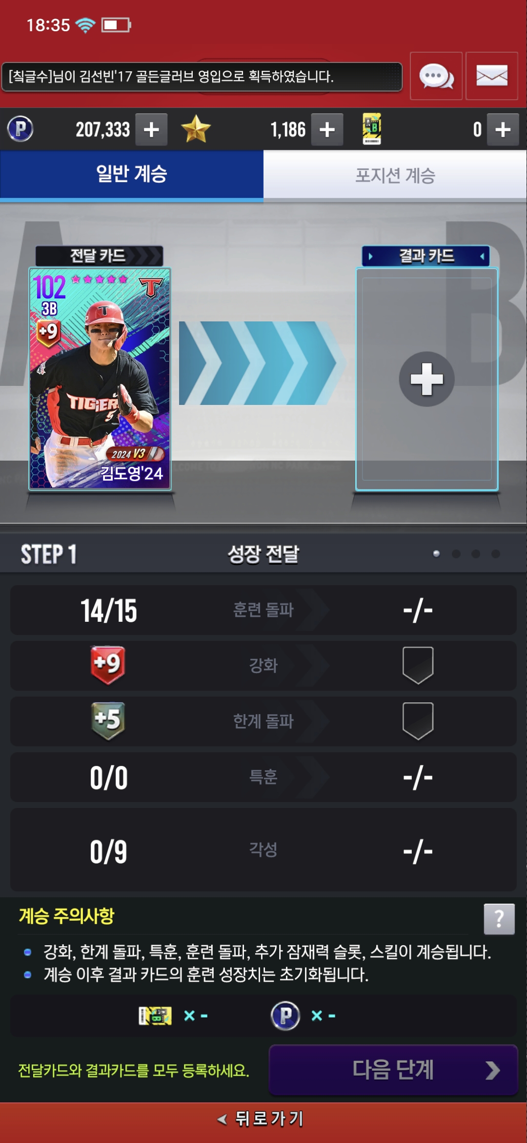 라이브 김도영에서 국대 김도영으로 계승을 하려하는데 원래 안돼는건가여?
