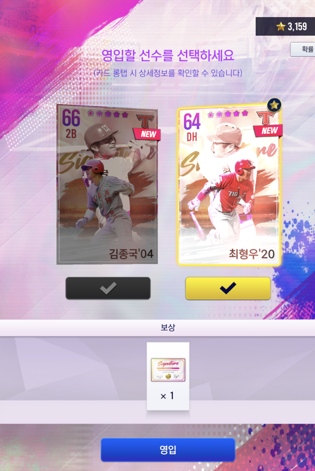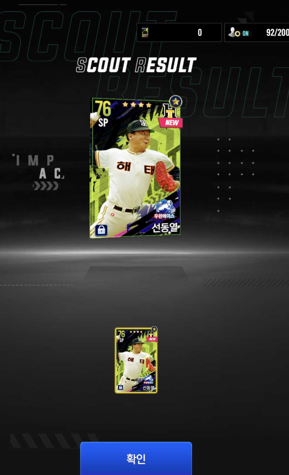 시그 영입에서 20최형우 나오고 우에 구선팩에서 원트에 선동열 뽑았습니다 9각 철동열 만들고 계승하면 되겠네요
