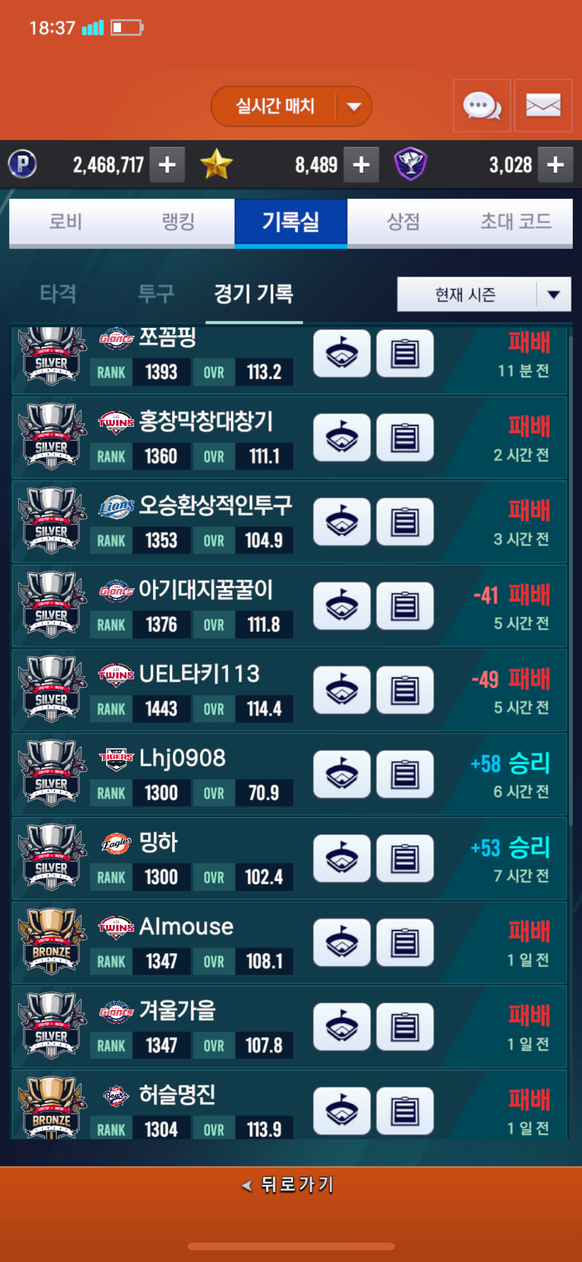 열심히 키워서 드디어 몇 판 씩은 이길 수 있는 오버롤까진 올라왔다고 생각하고 즐겁게 하고 있었는데…