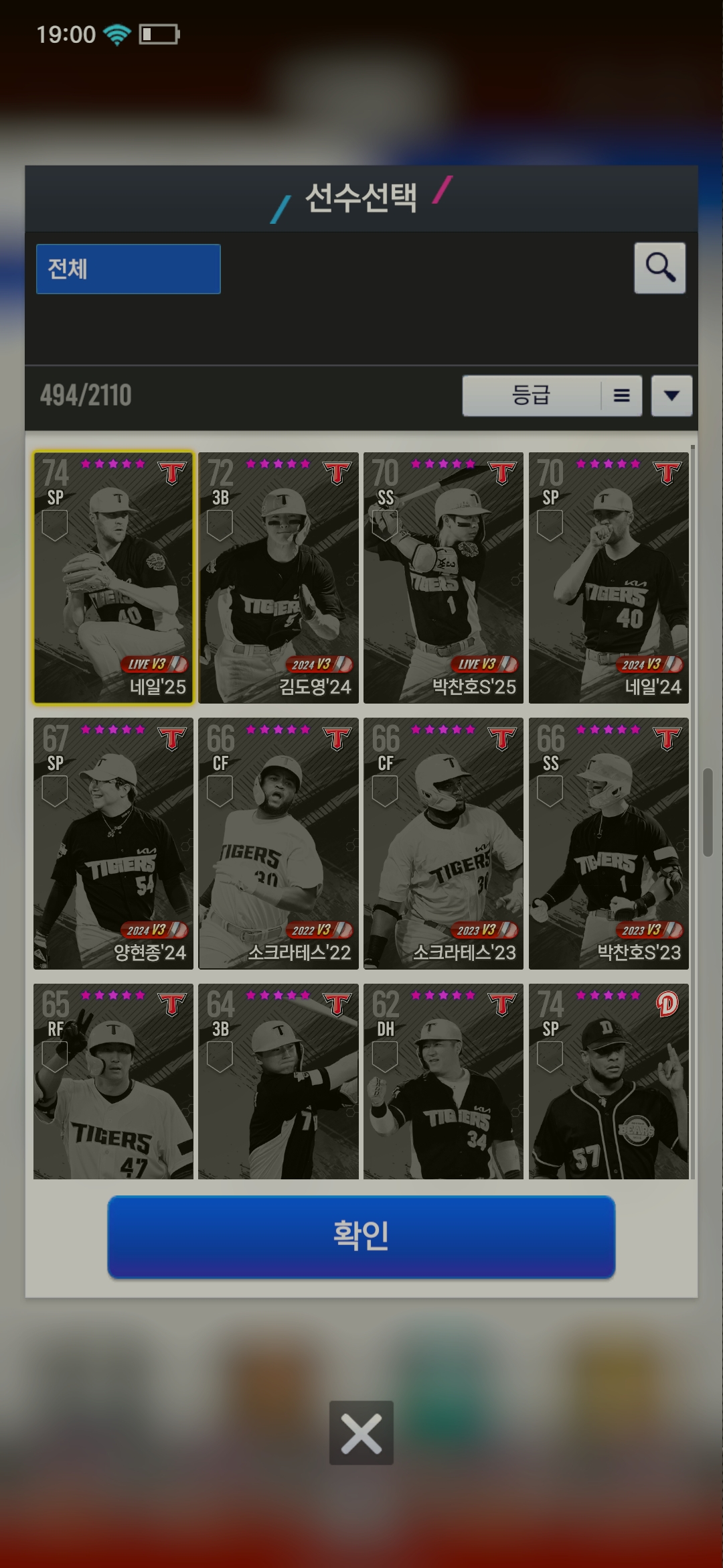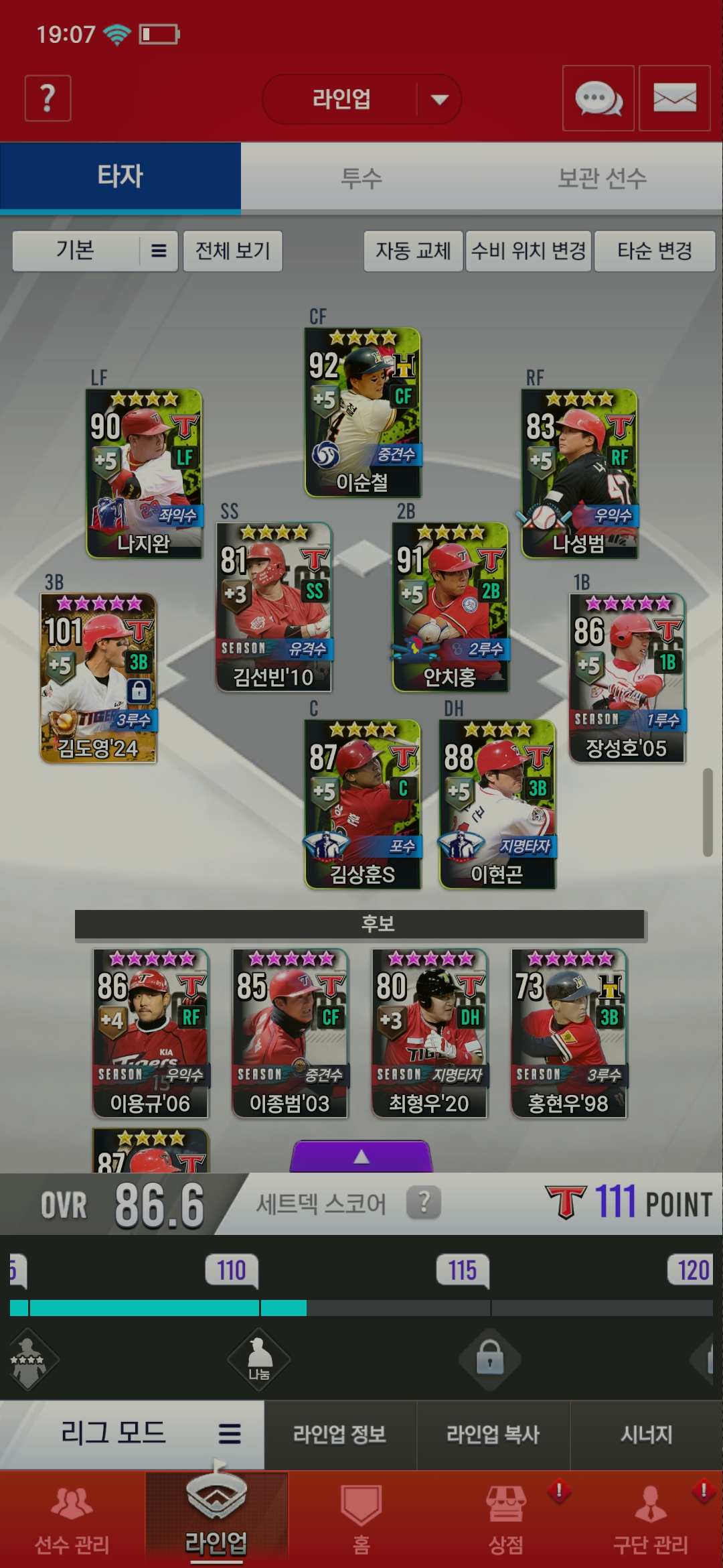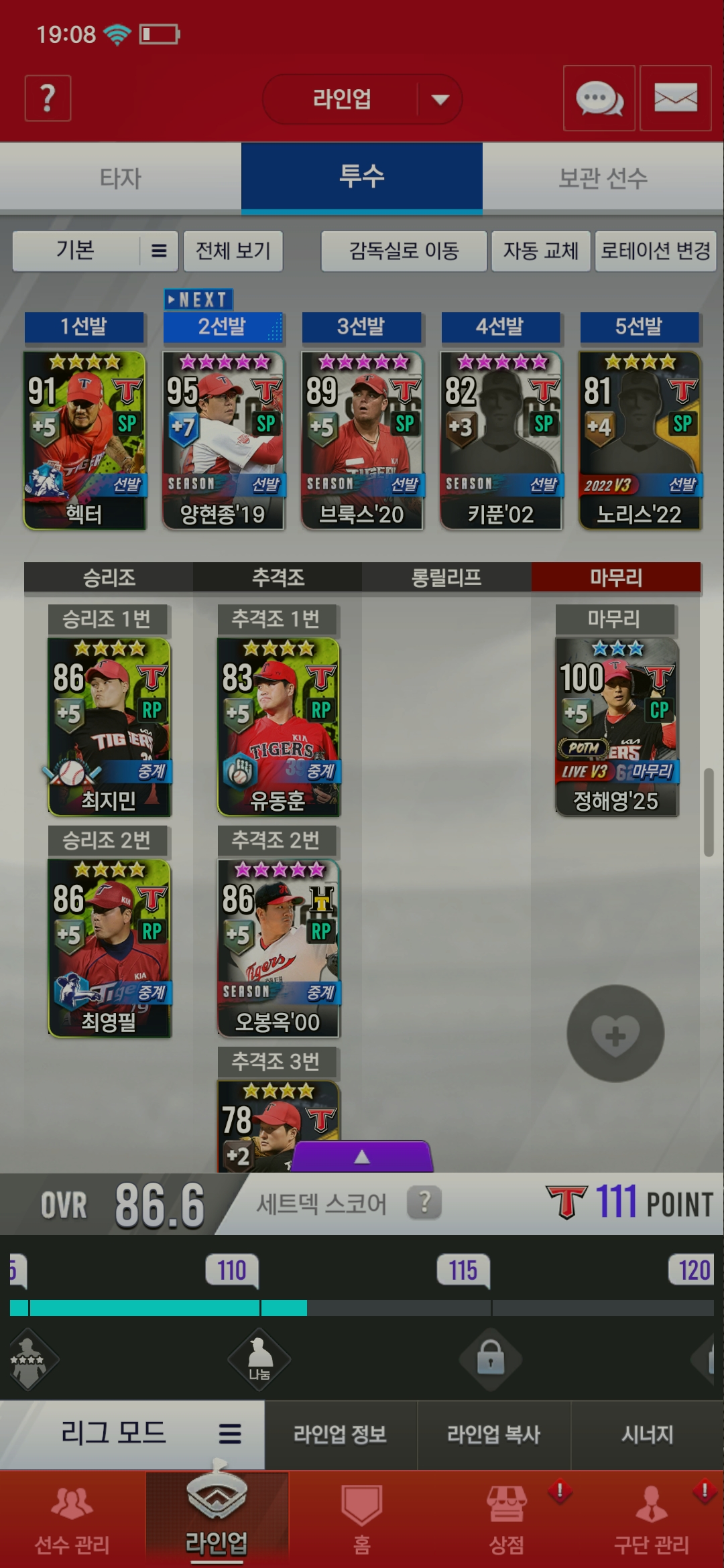 구단 카드 선택권을 얻었고 기아덱입니다