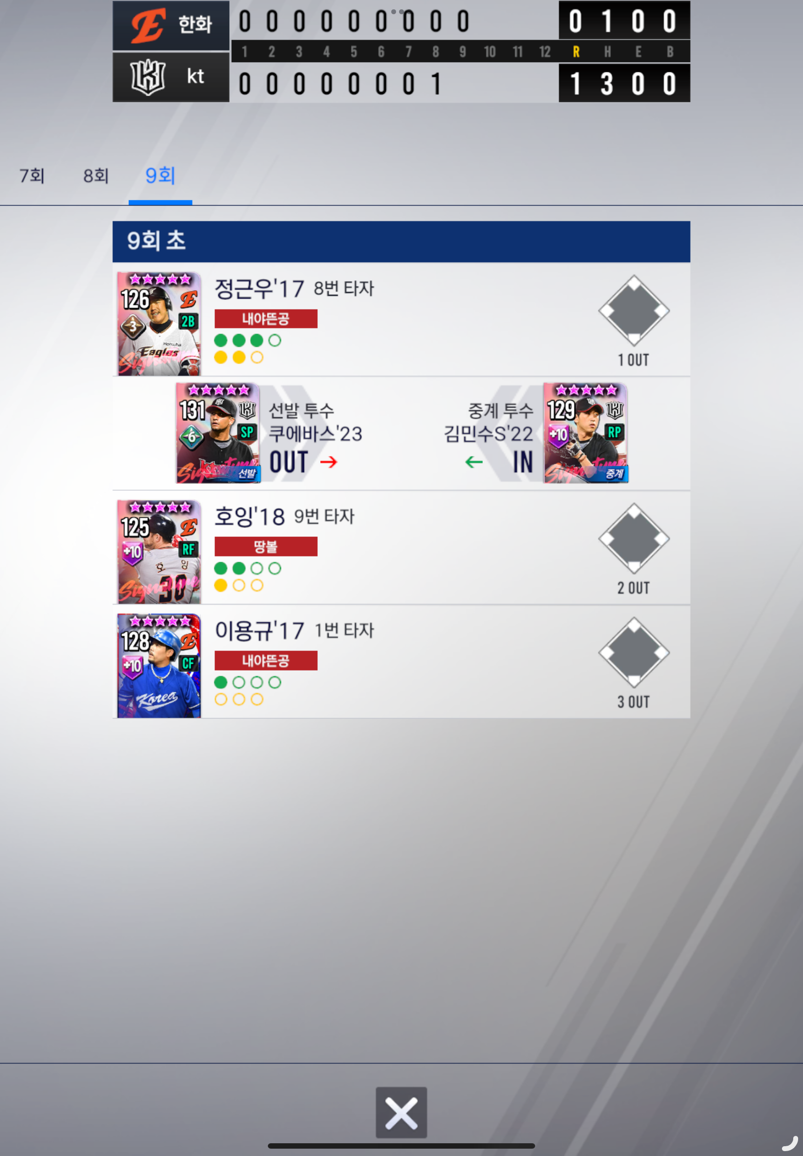 ■ 9회초 왕족 수비