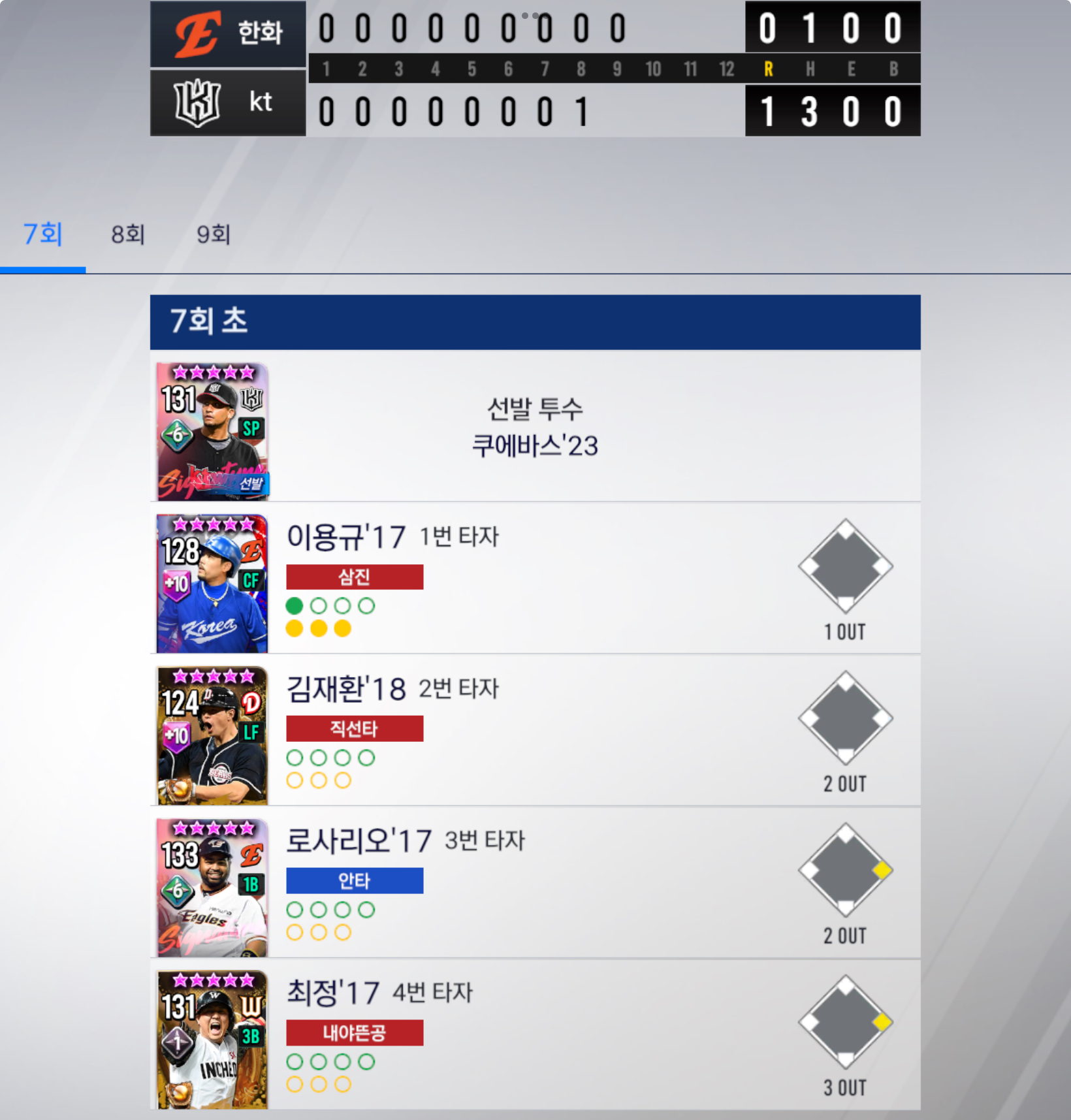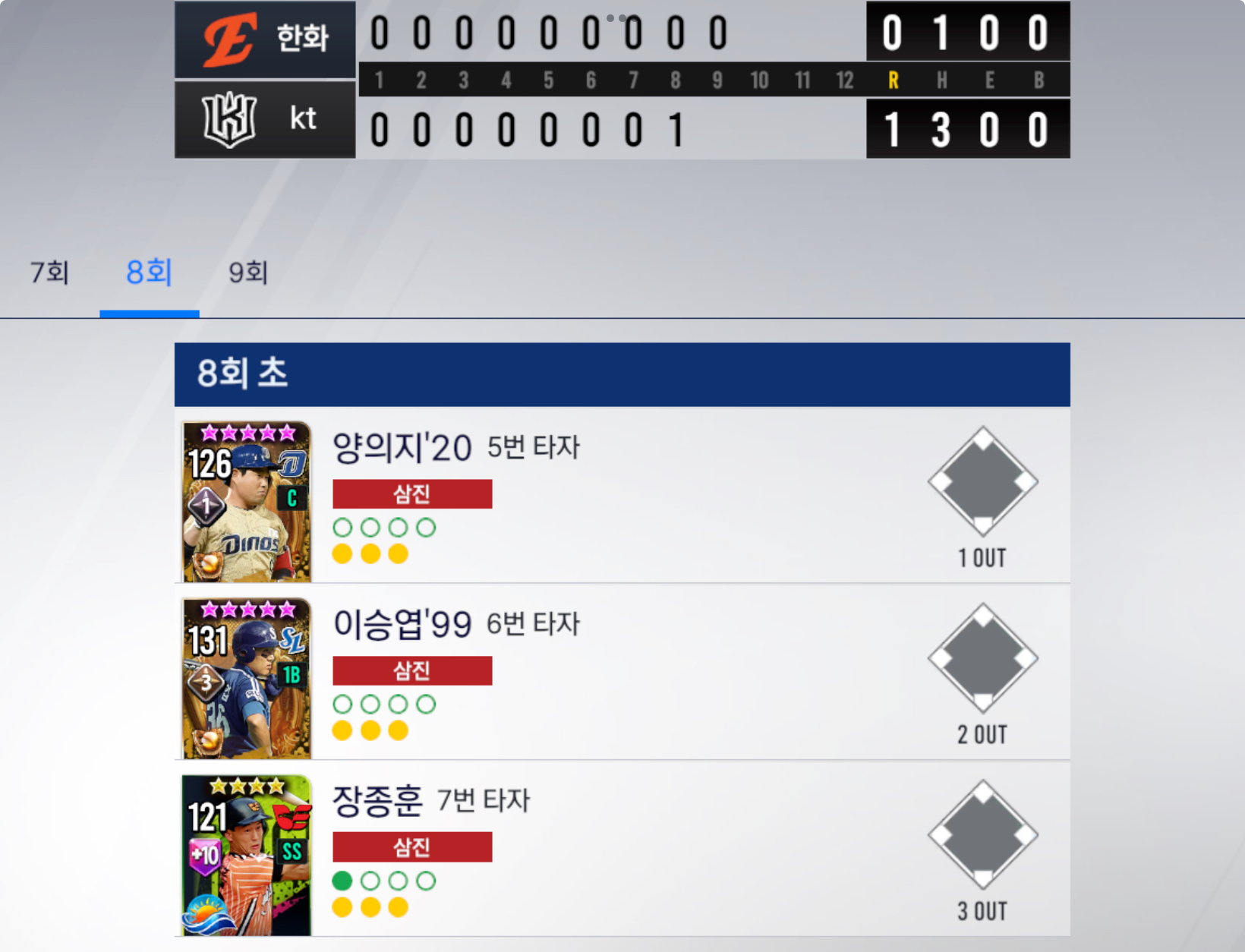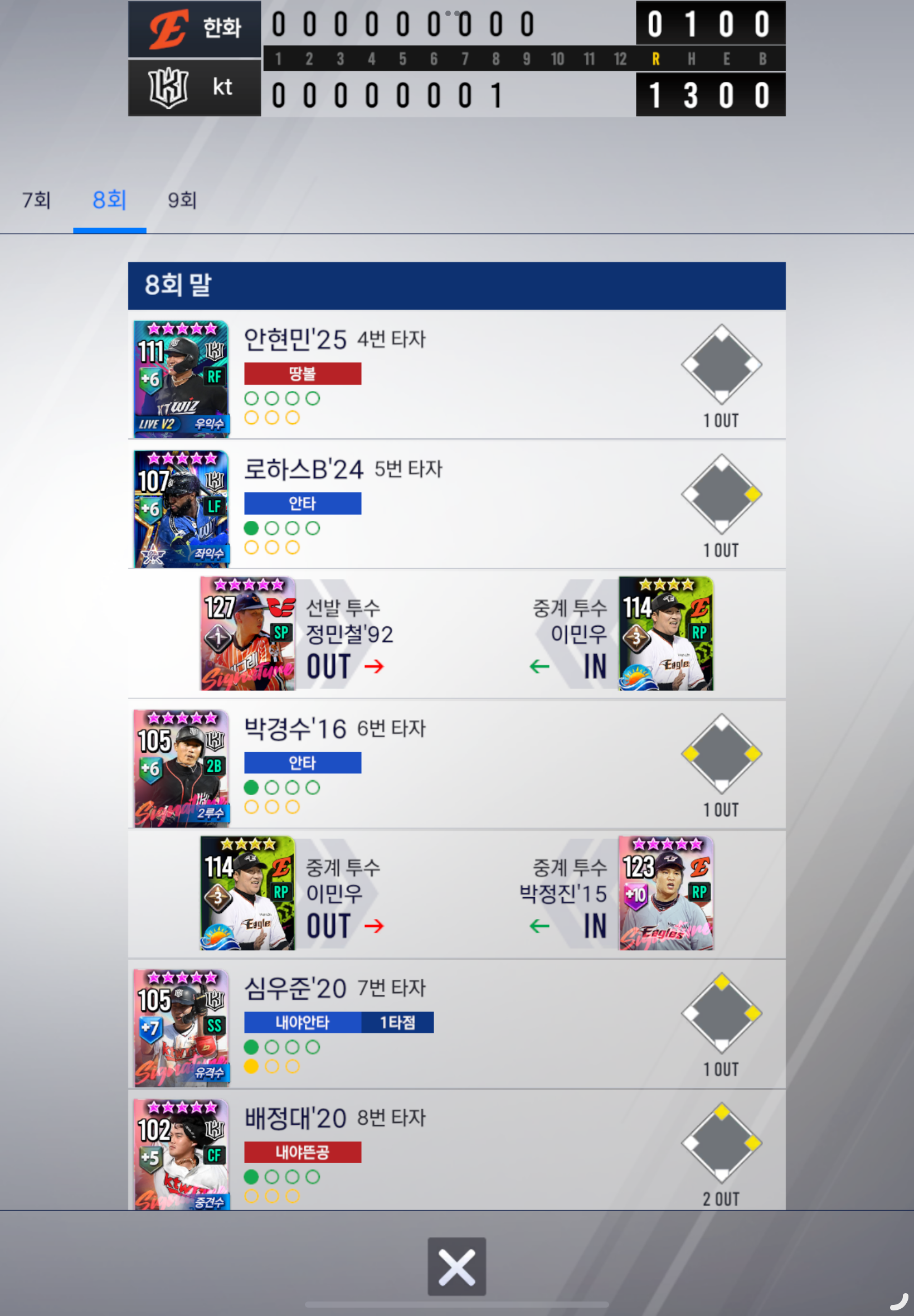 ■ 8회말 심우준 번트 진루성공 1점