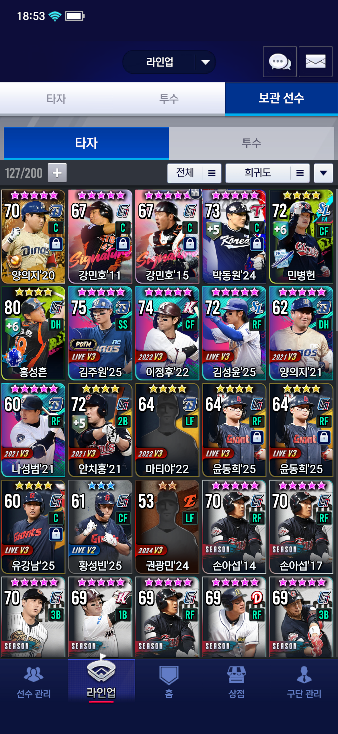 준종결급 20양의지 골글 가지고 있는데 강민호는 한돌 다 되어있고 각성하면 되는데 지타쓰기도 애매해서 그냥 재조합 돌릴지말지 고민입니다;