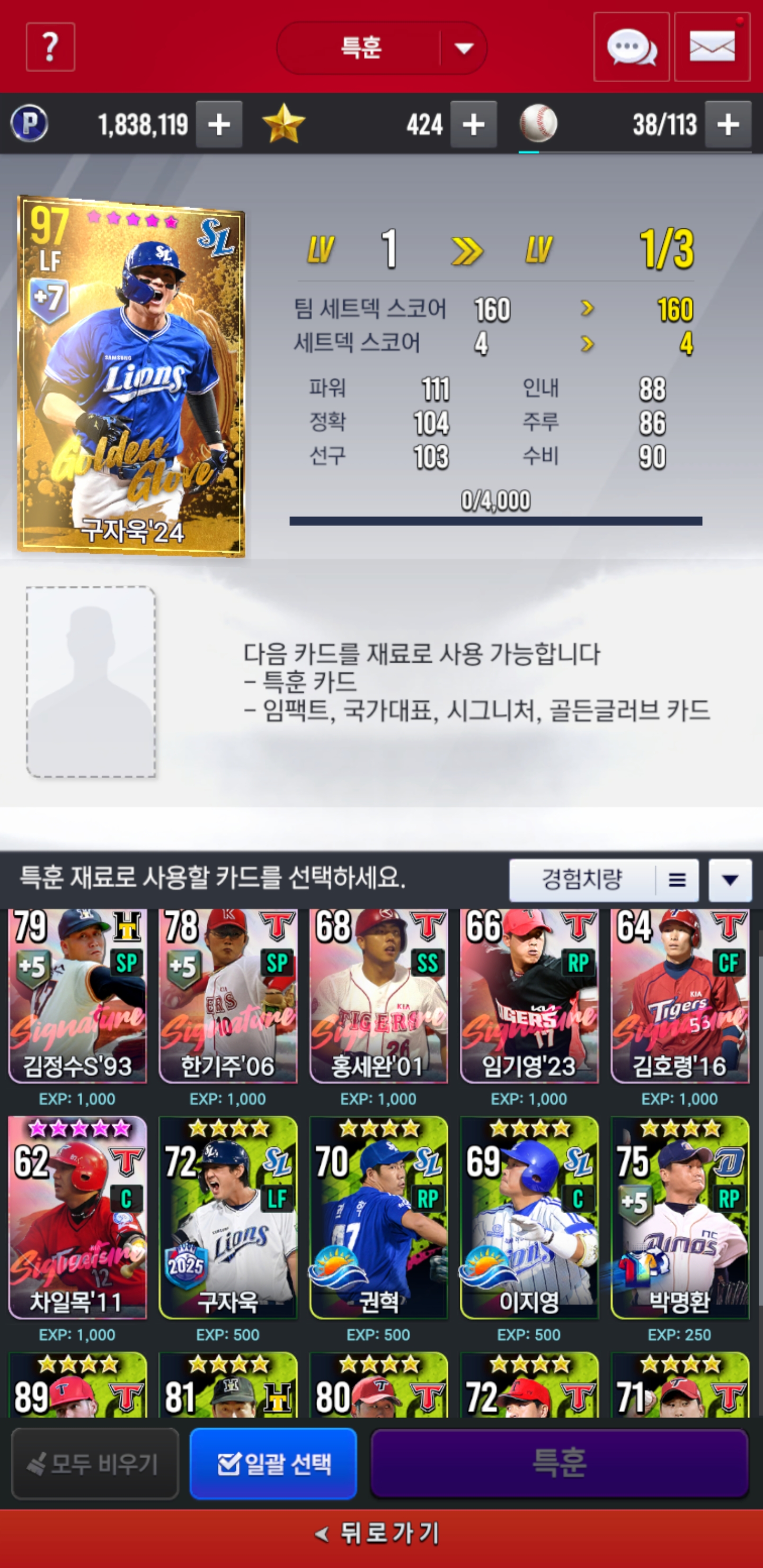기아 무과금 한돌, 특훈, 올스타 등 문의드려요