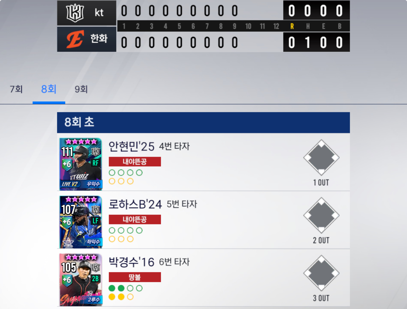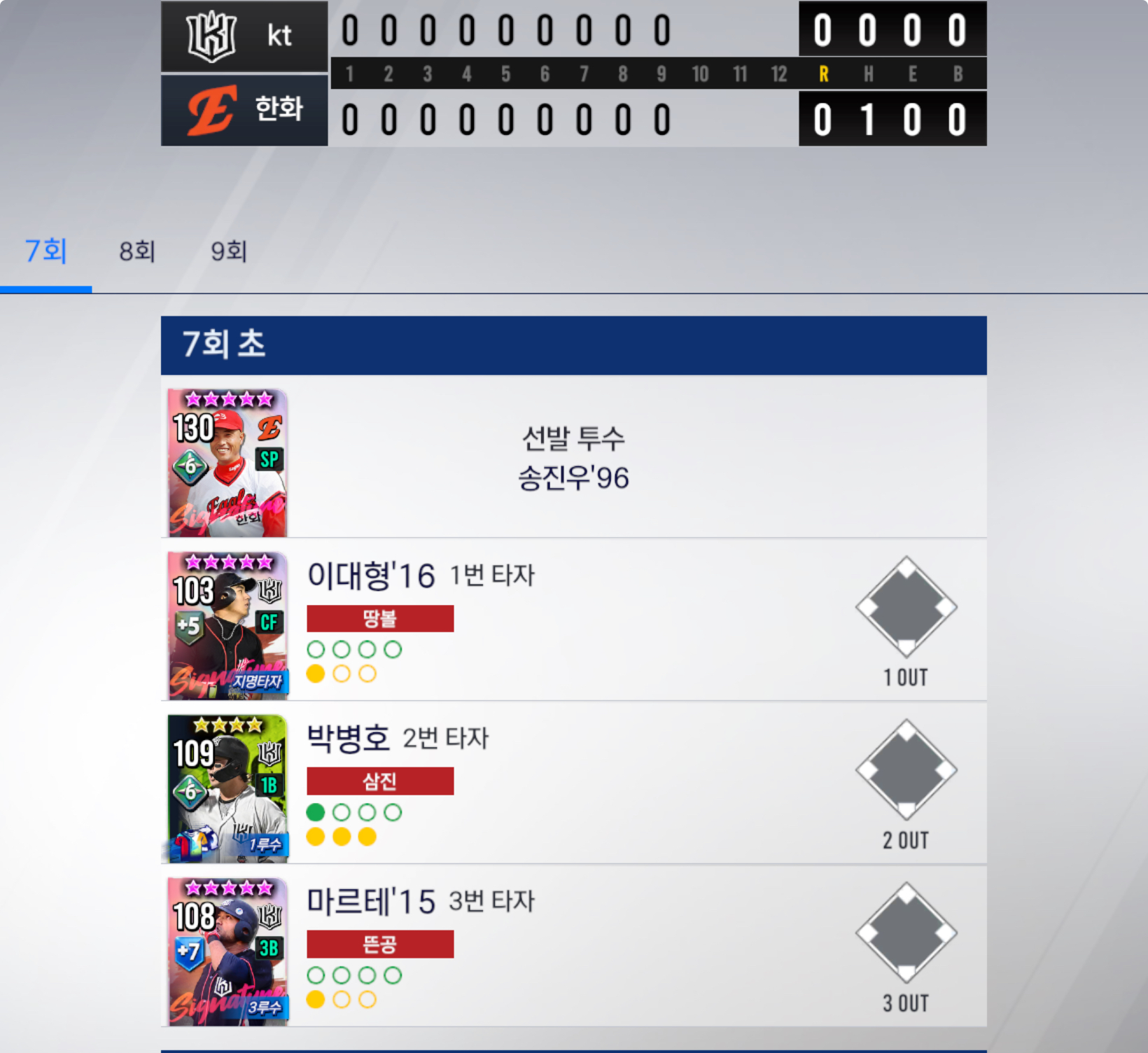 ■ 7회 말 골글 9각 로하스 삼진아읏
