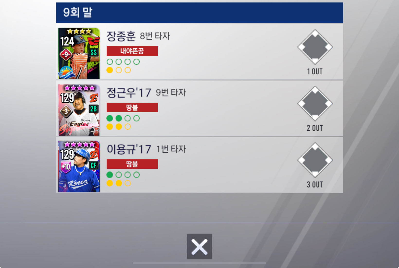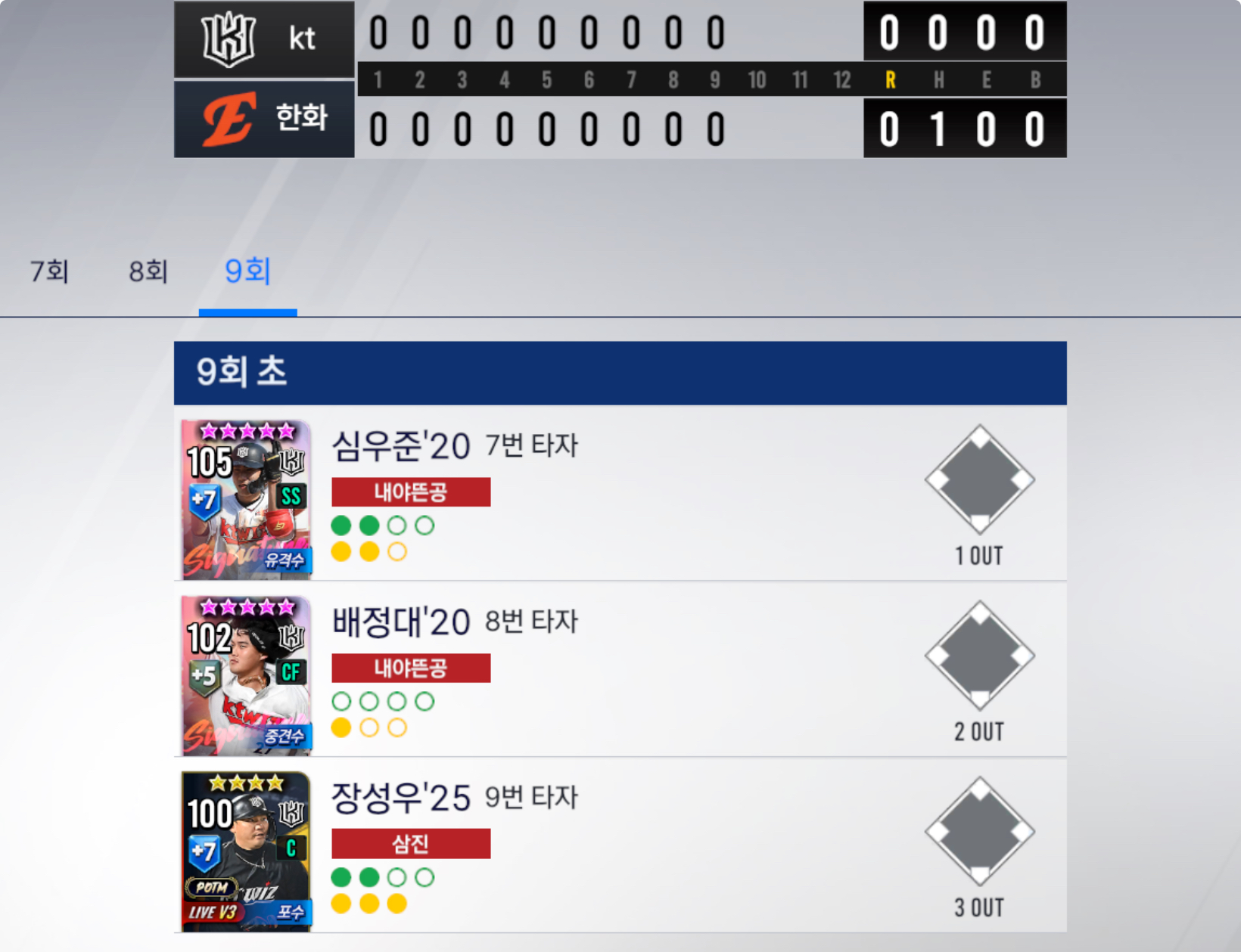 ■ 9회 초 왕족의 장성우 삼진아읏