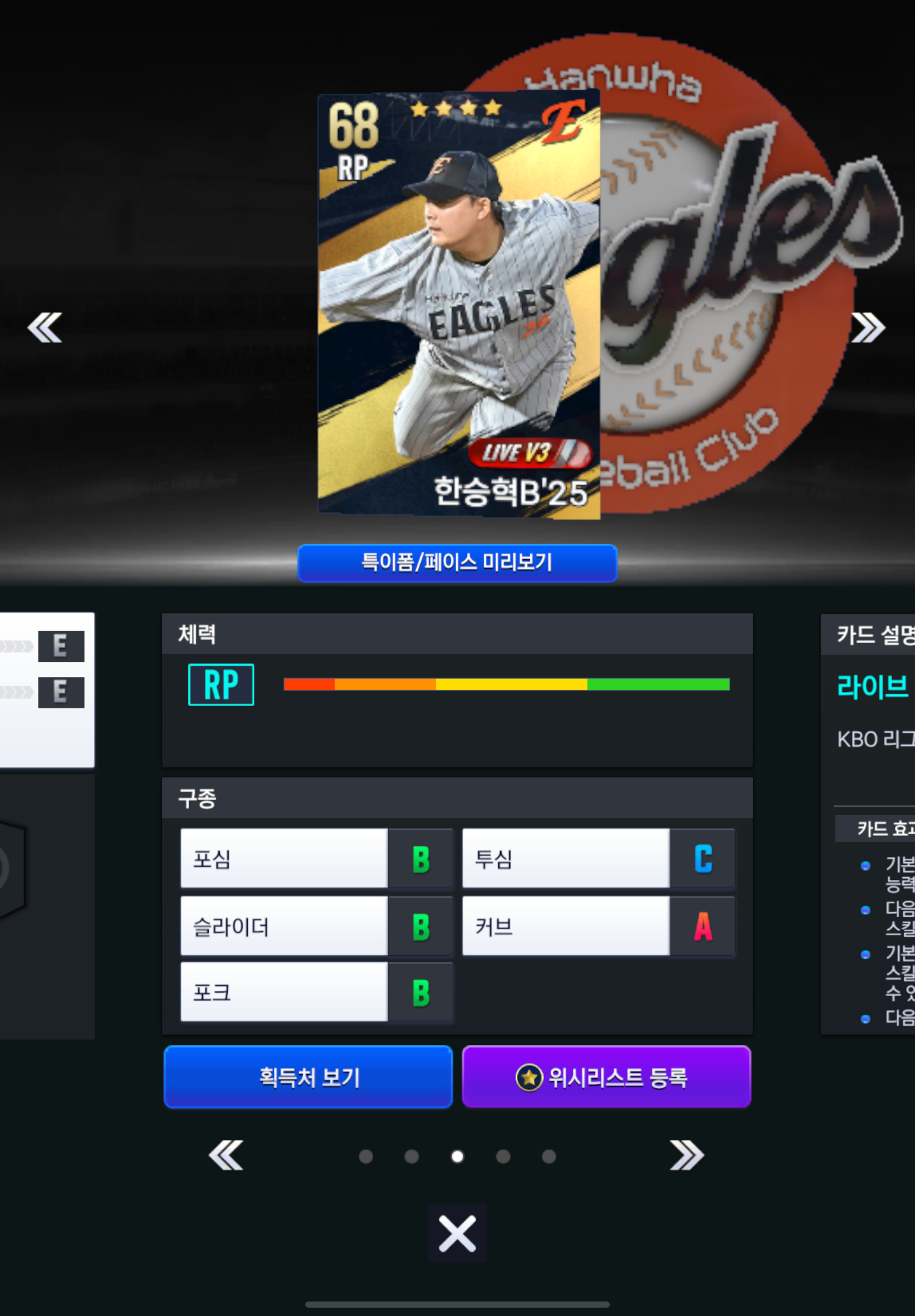 특히 올시즌 활약이 대단했다. 71경기에 등판, 64이닝을 던지면서 3승 3패 16홀드 평균자책점 2.25의 성적을 거뒀다. 한화이글스가 만년 하위에서 벗어나 한국시리즈까지 진출하는데 큰 공을 세웠다.