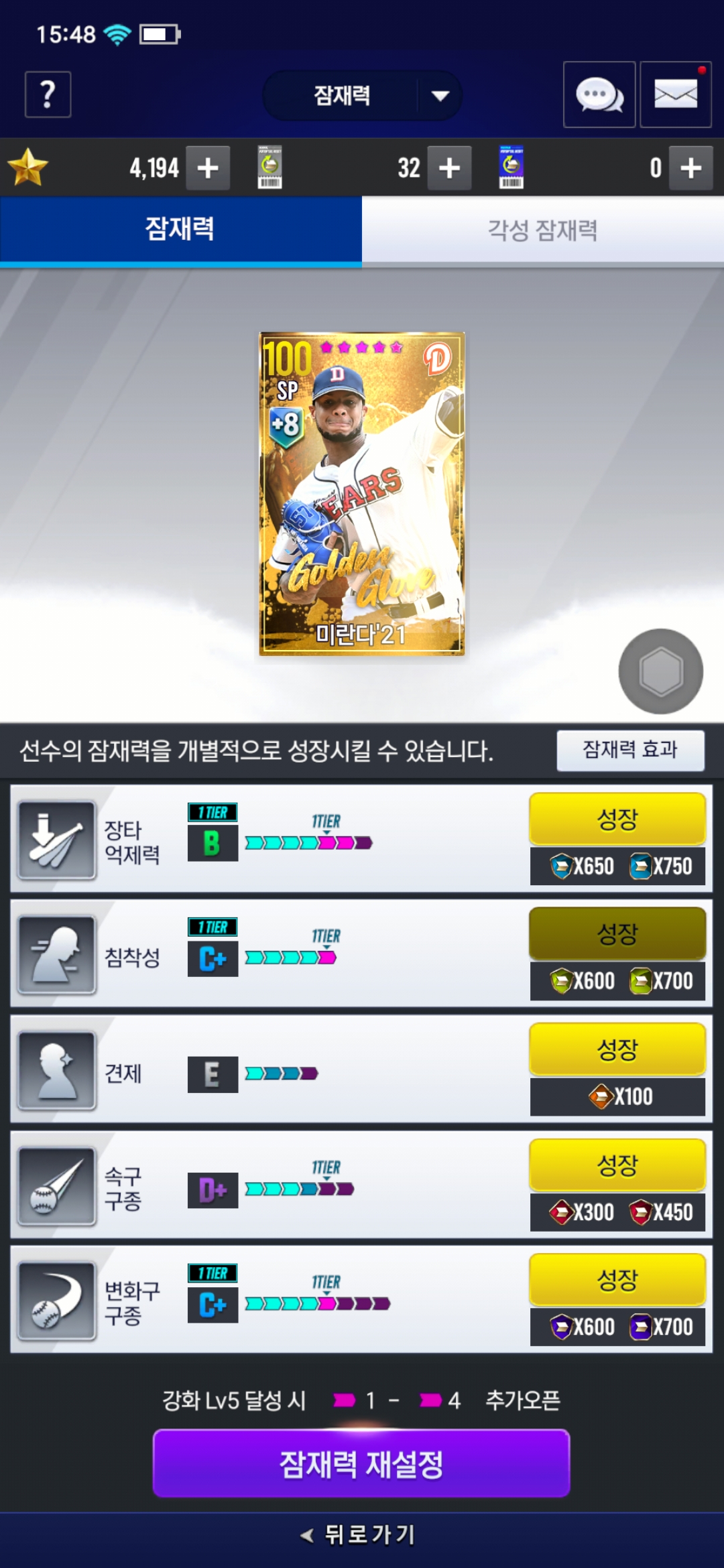 미란다 잠재력 최소 어느정도까지 맞춰야할까요?