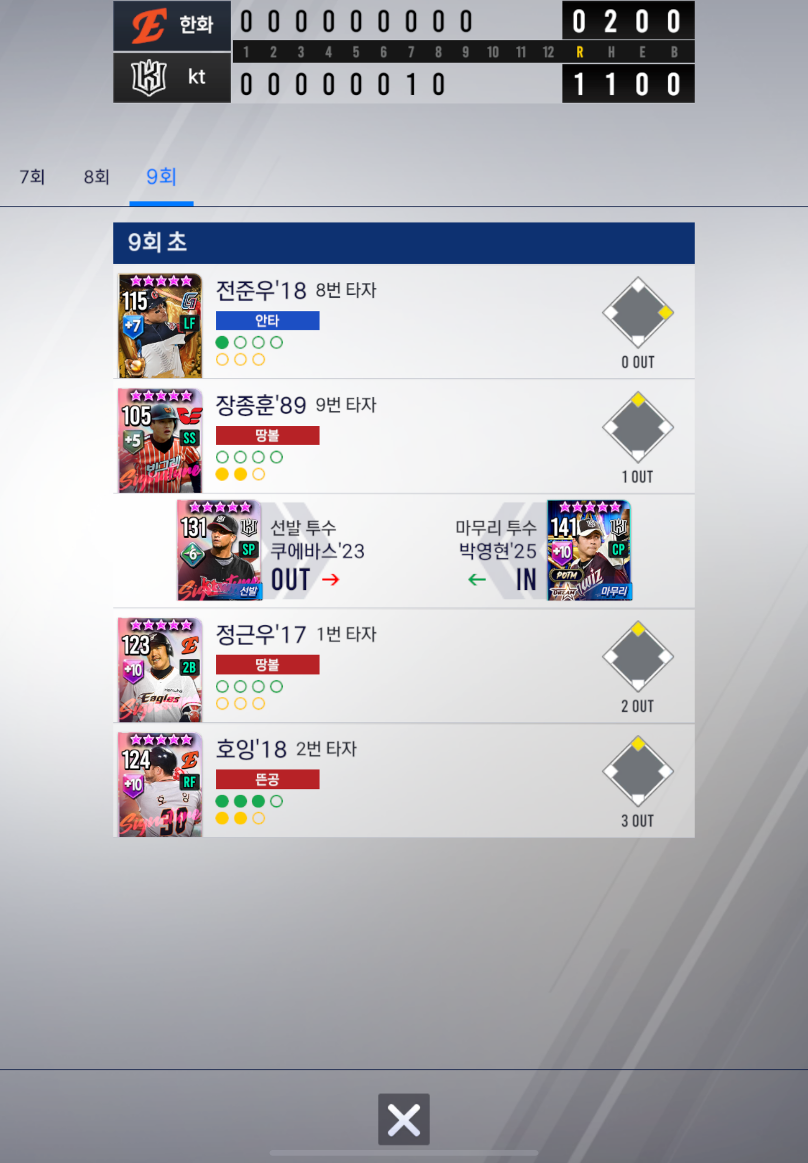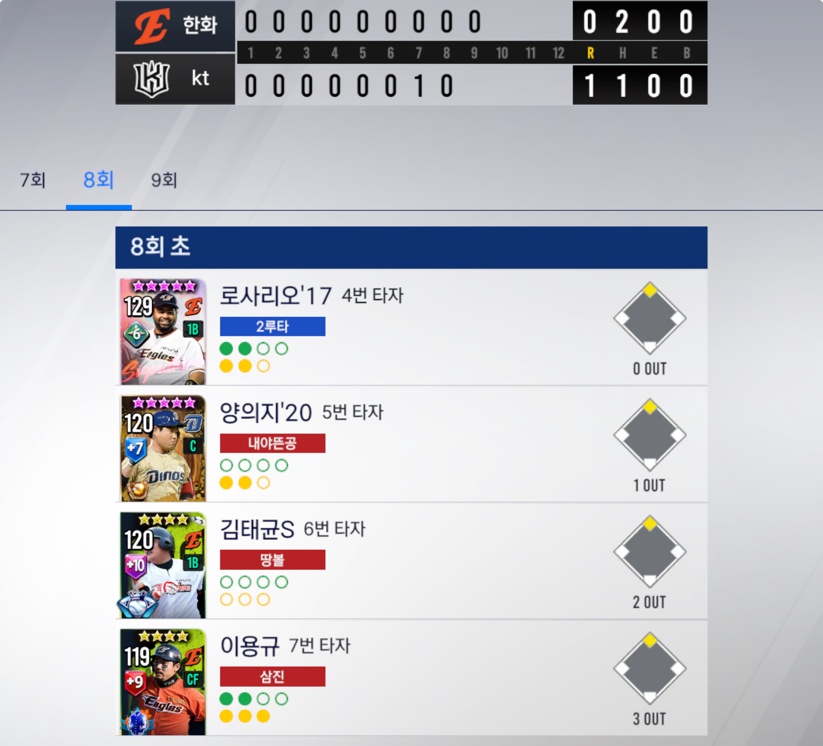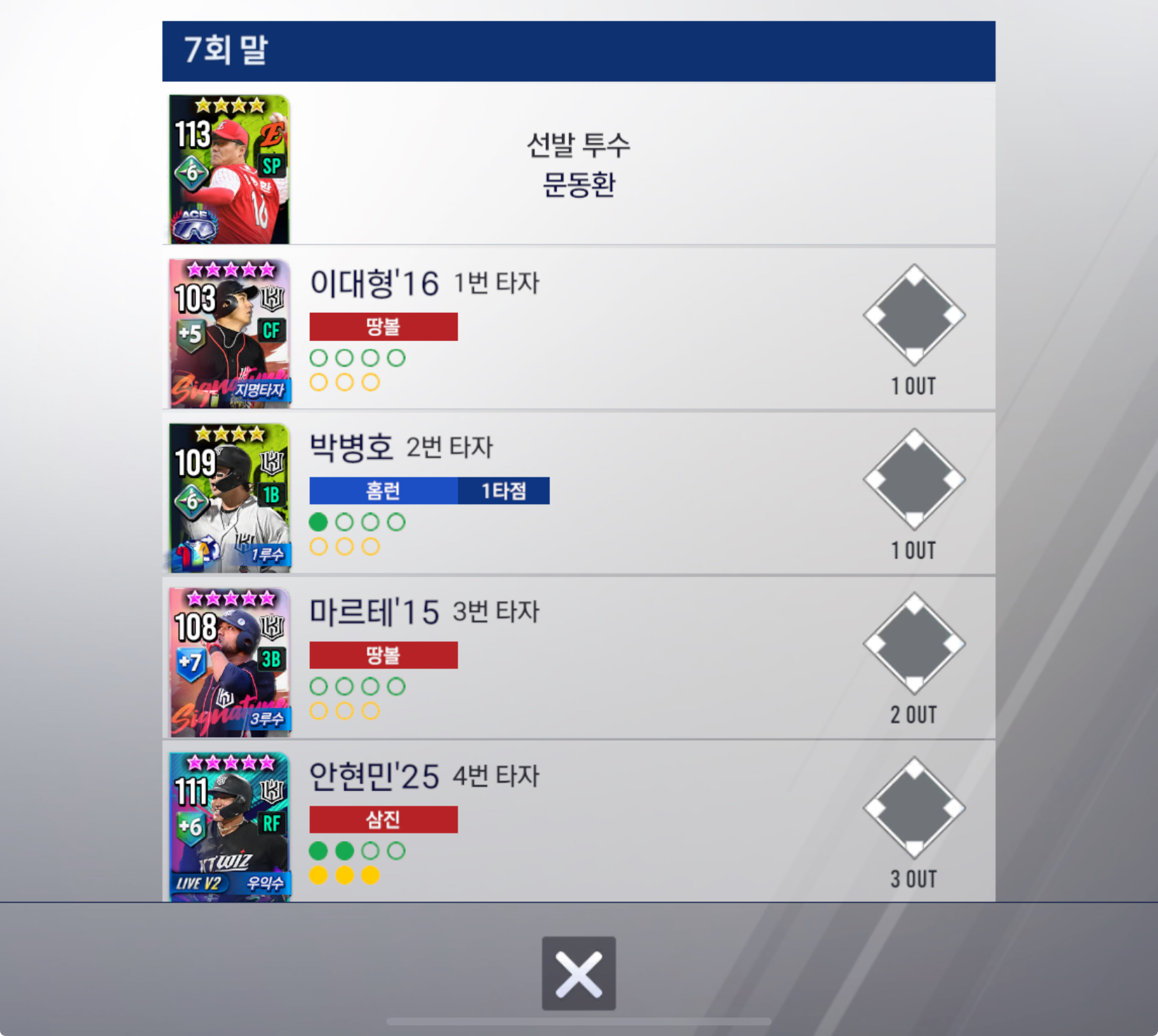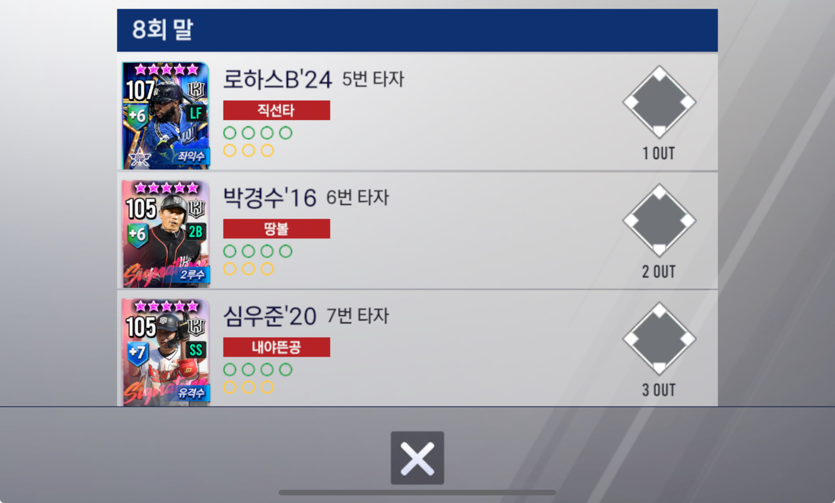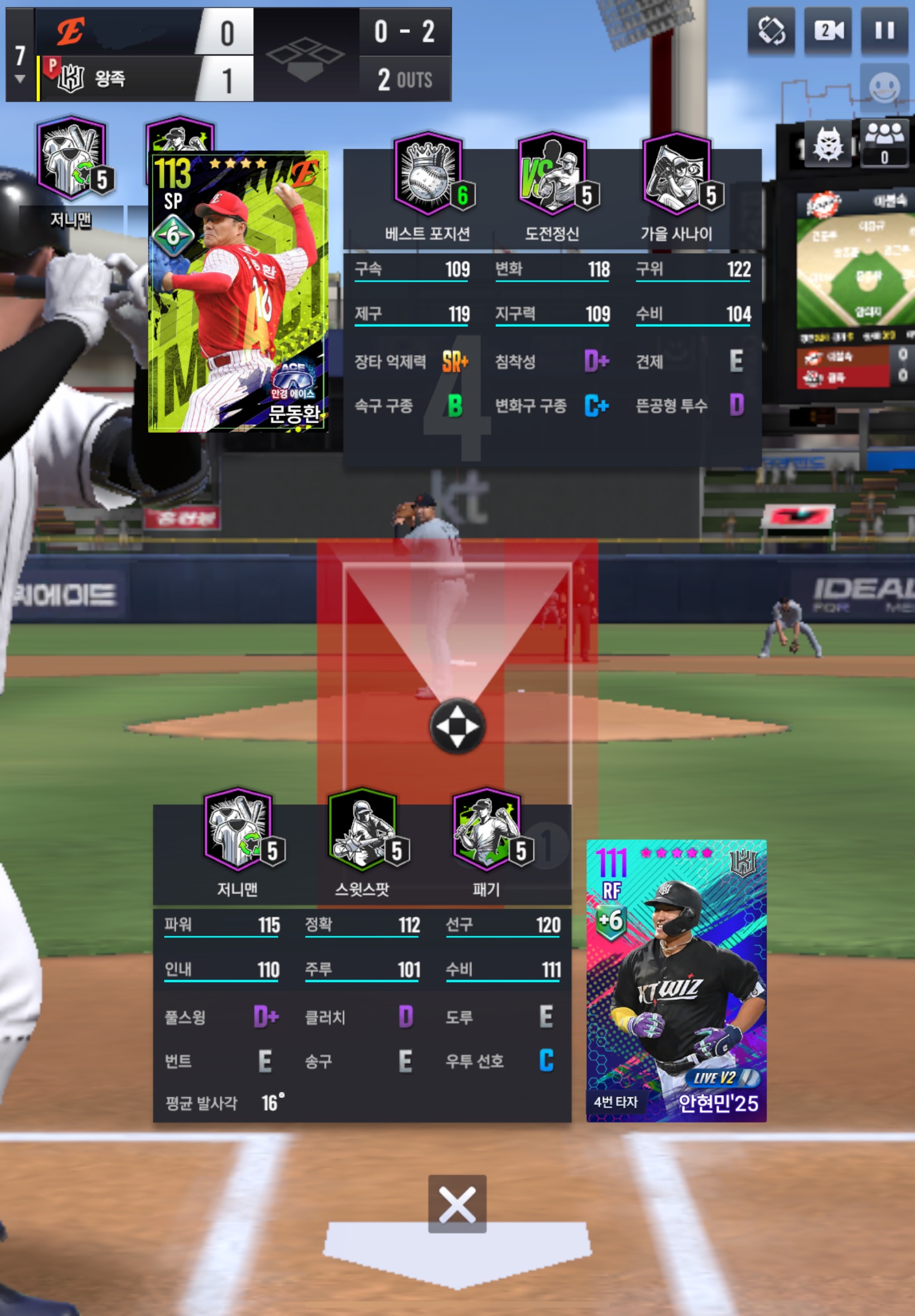 하필 상대하는 투수가 왕족의 박병호 6각 SR+ 동일하여 정말 재미있는 대결이 성사되었습니다