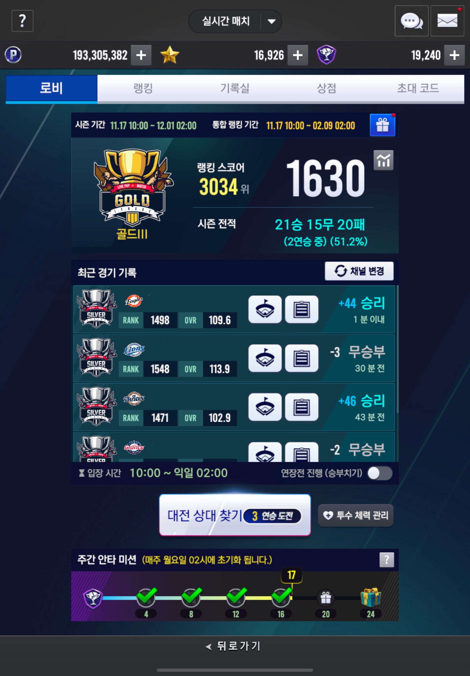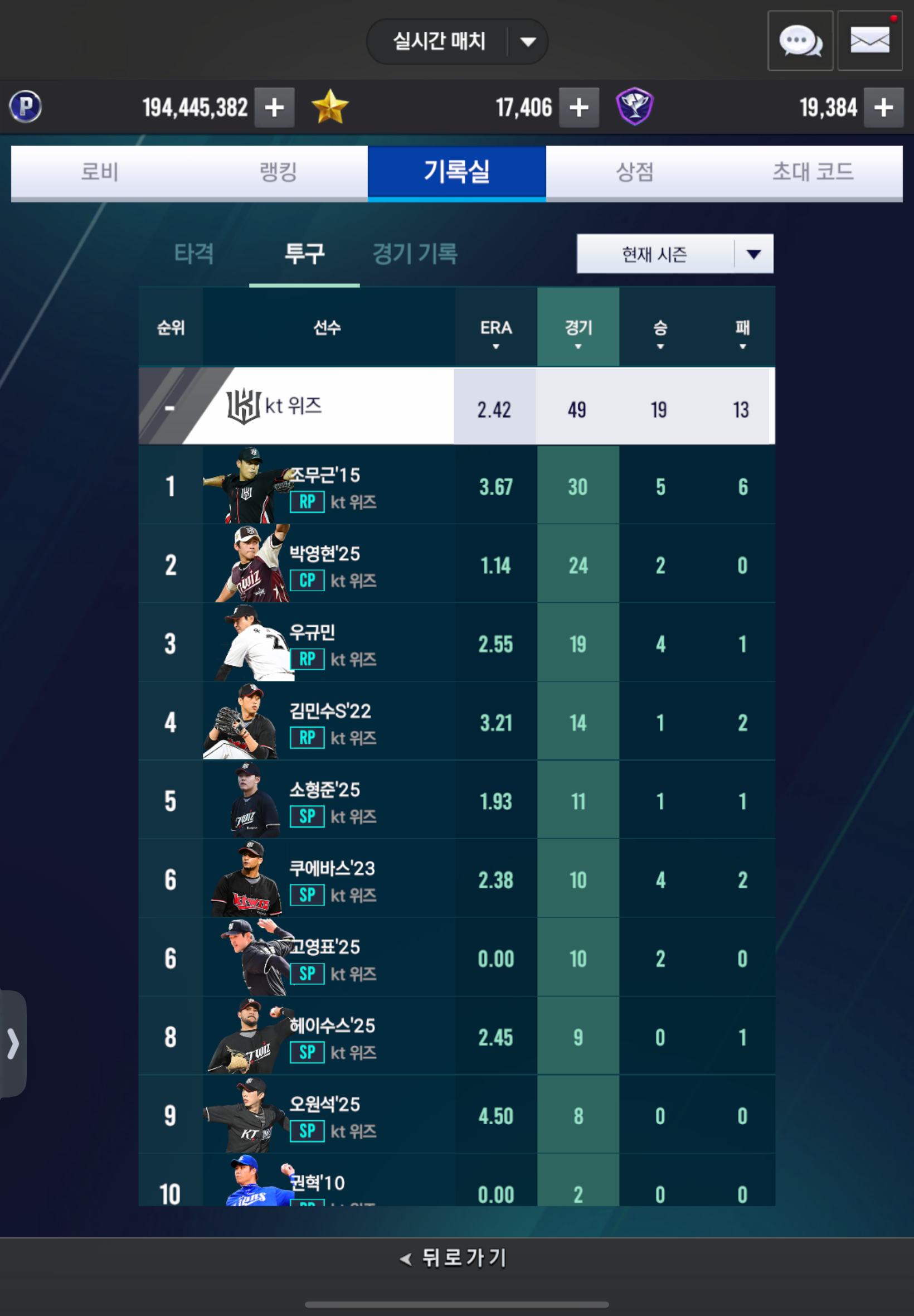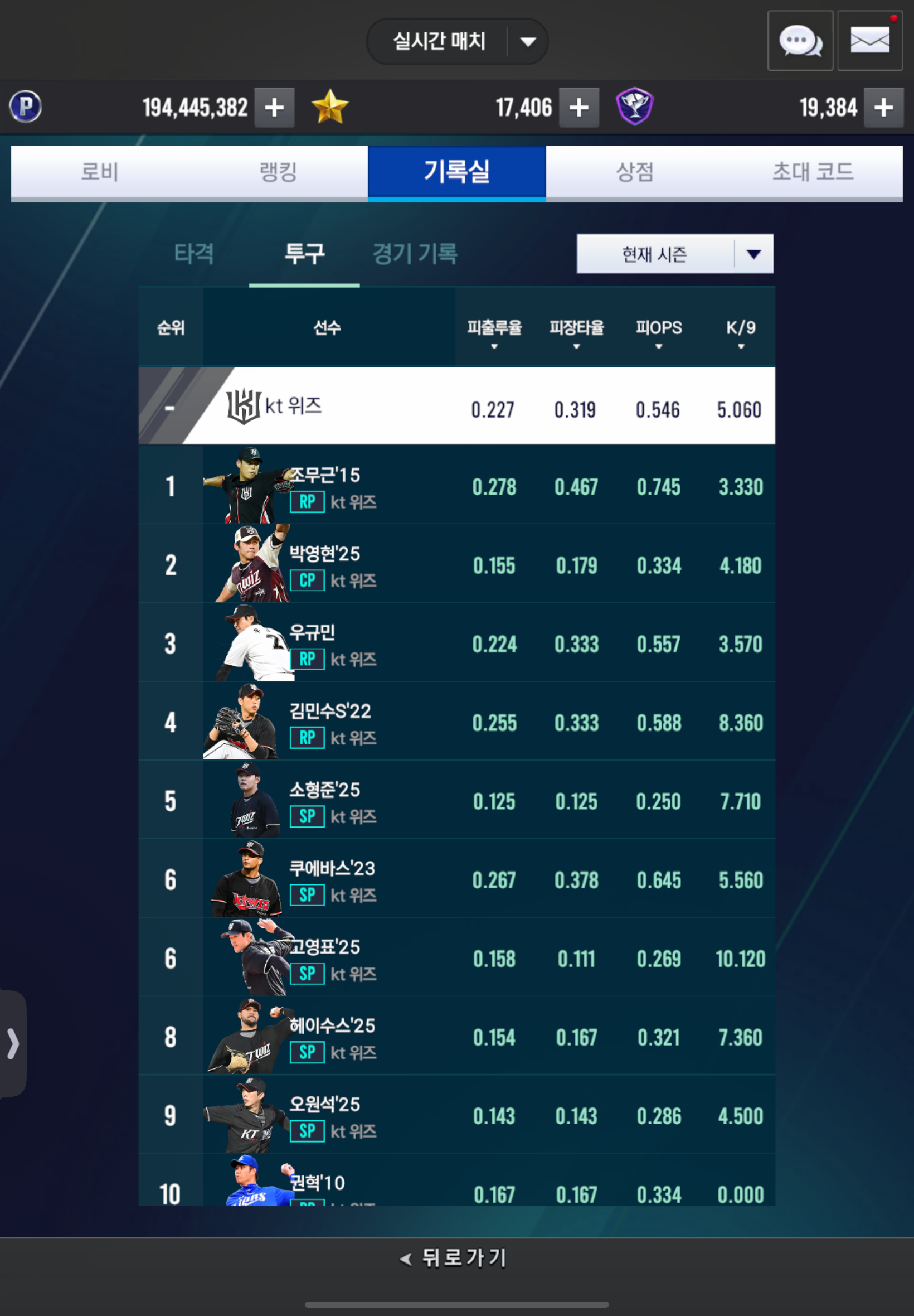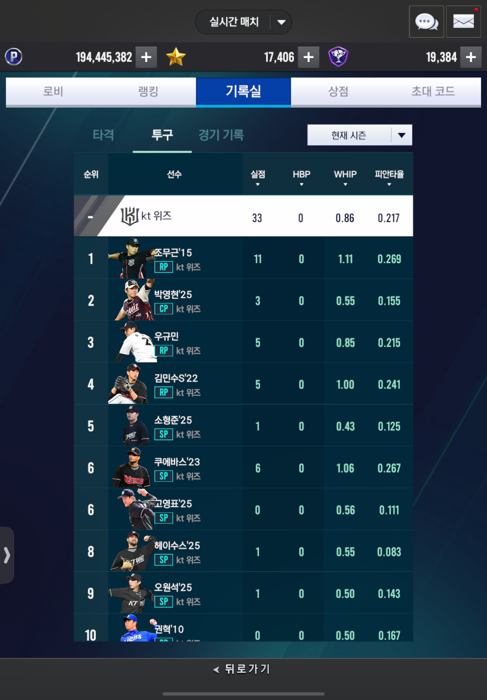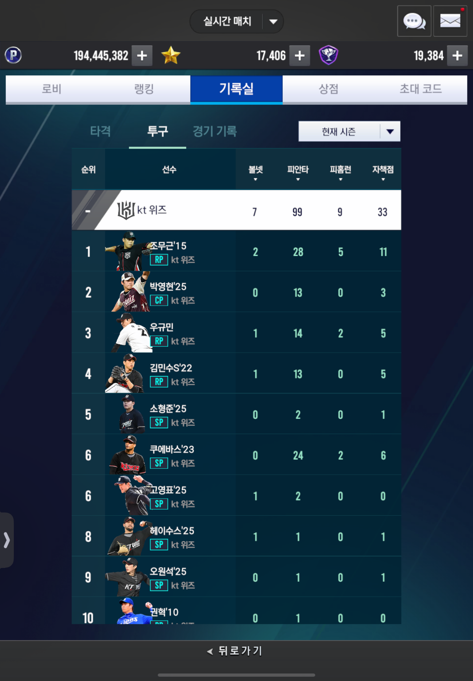 하필 상대하는 투수가 왕족의 박병호 6각 SR+ 동일하여 정말 재미있는 대결이 성사되었습니다