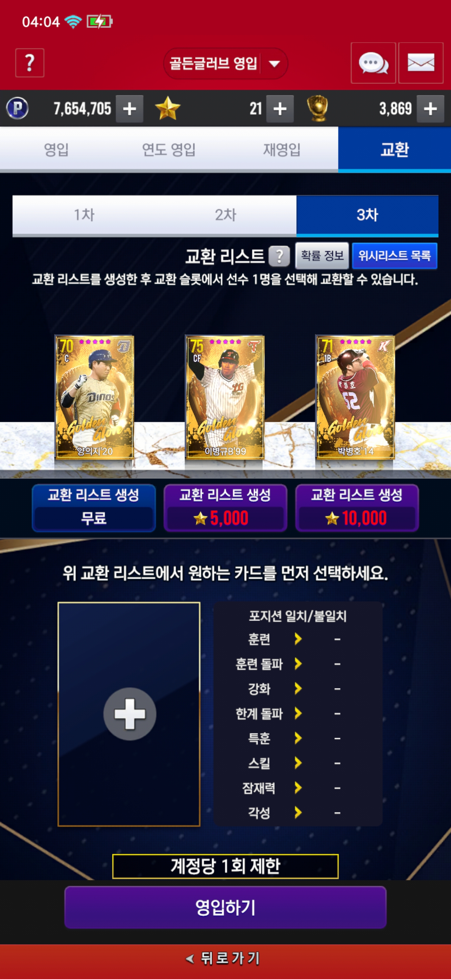 무과금이고 지금 골글 갖고 있는게 11 이대호인데 이거 넣고 바꿔도 되는지도 궁금합니다