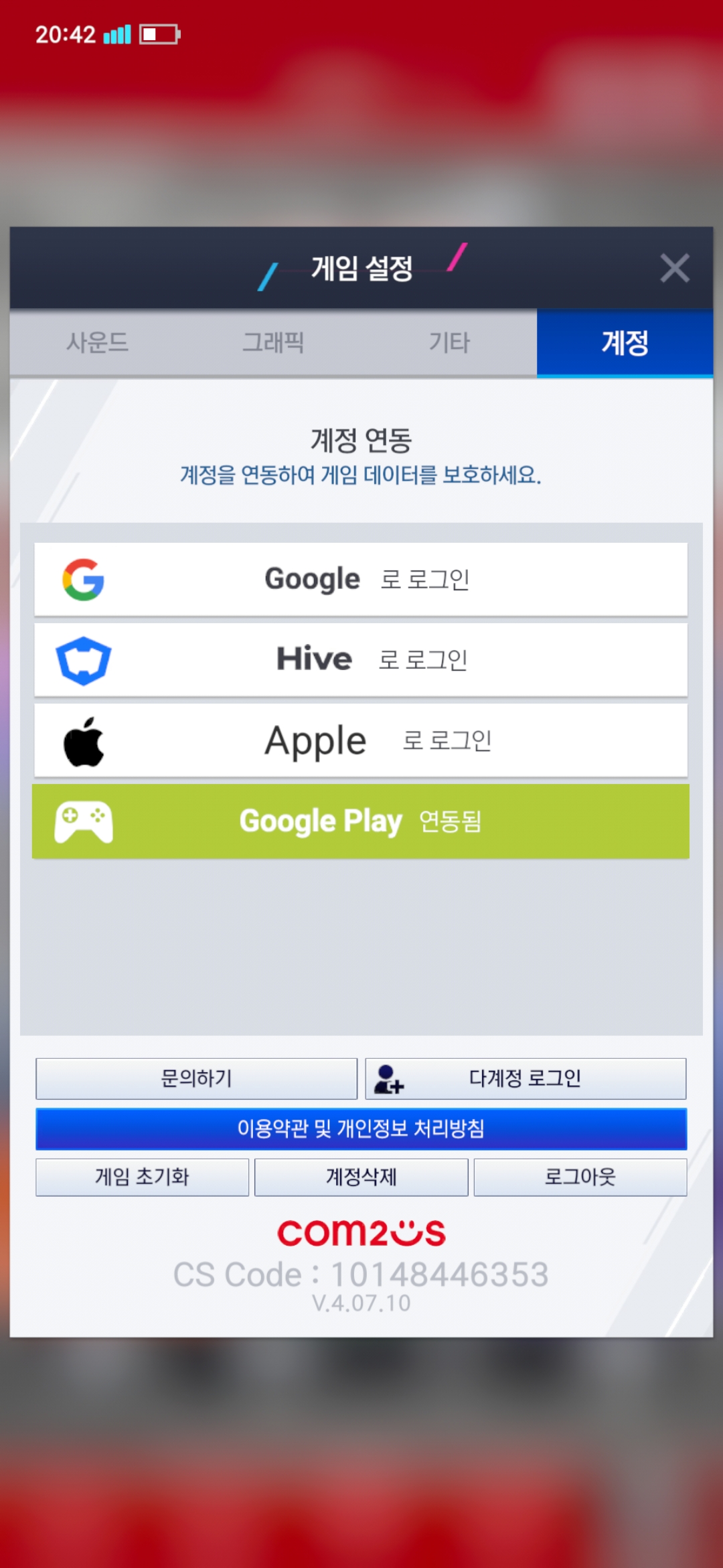 이렇게 게임 시작할때부터 로그인이 되있어서 연동을 해제하고 하이브로 하고싶은데 어떻게 해제하나요?