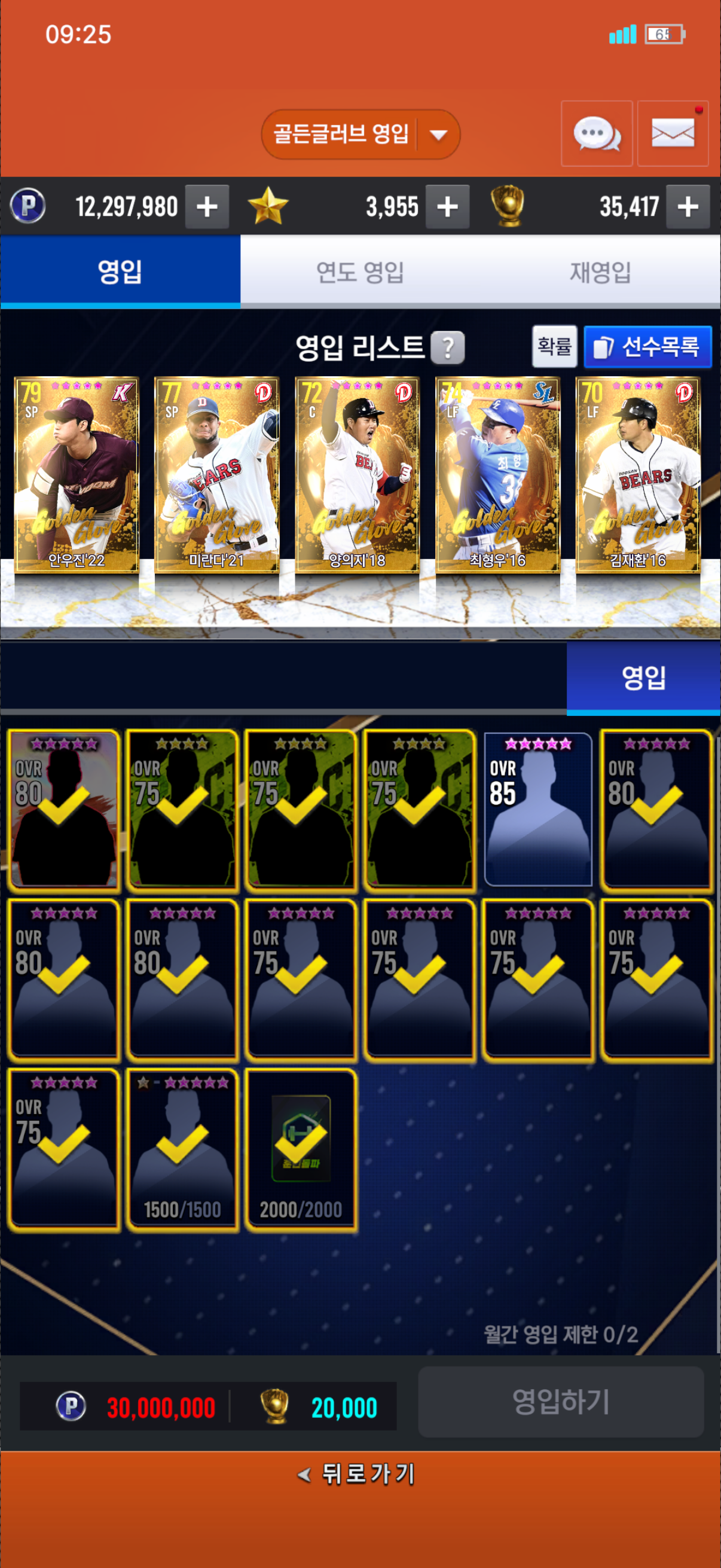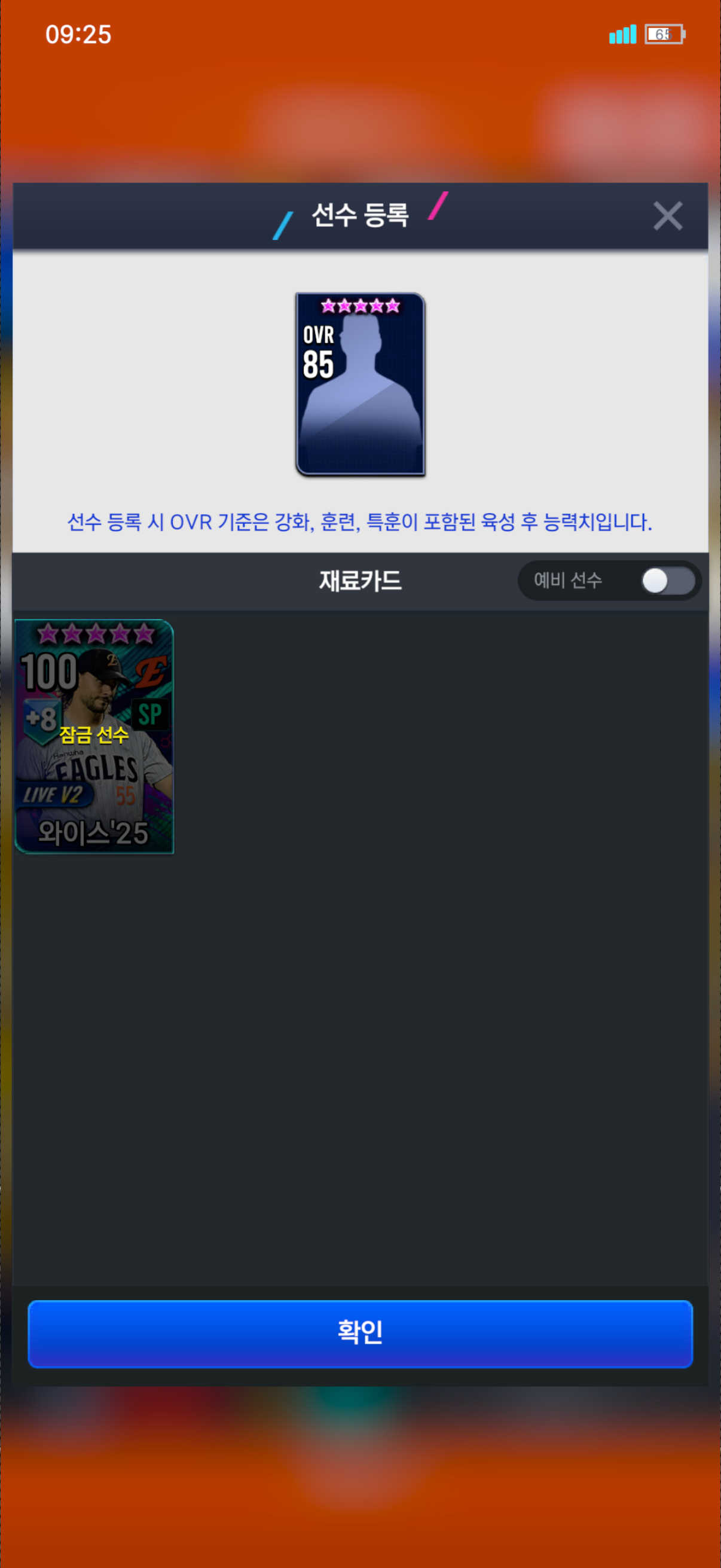 골든글러브 선수등록에 OVR85에 주현상을 등록하고 싶은데 왜 안되는걸까요?…