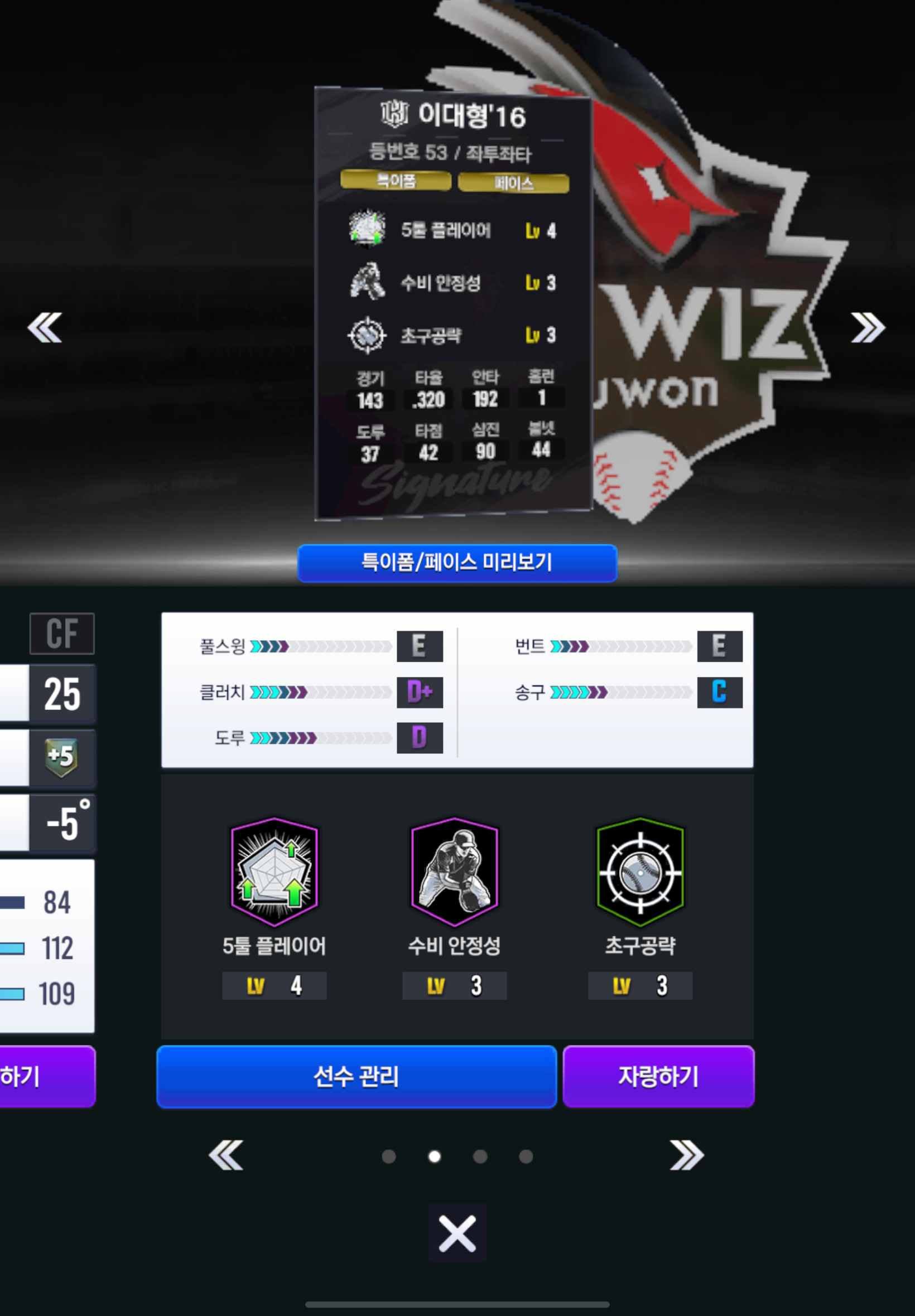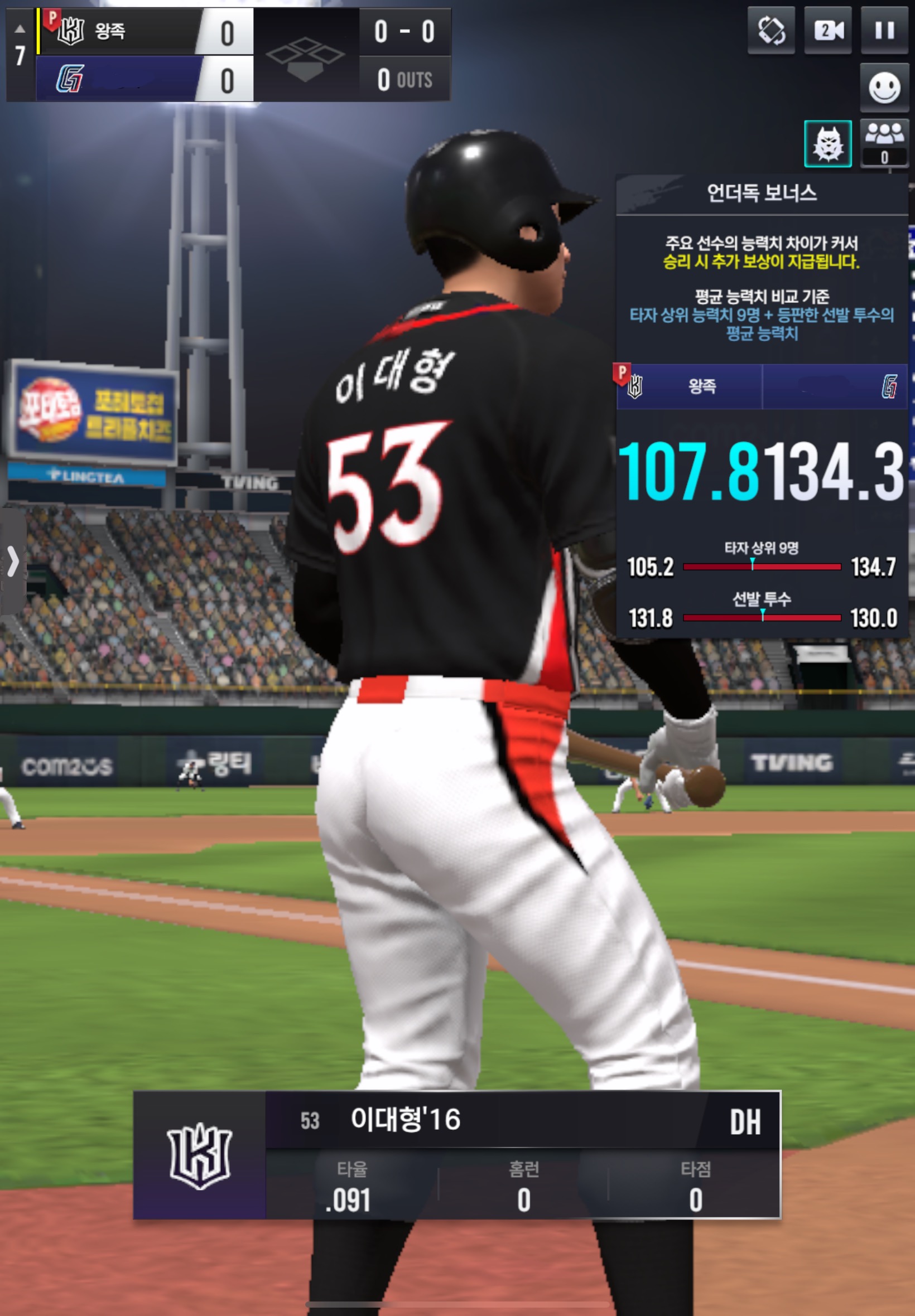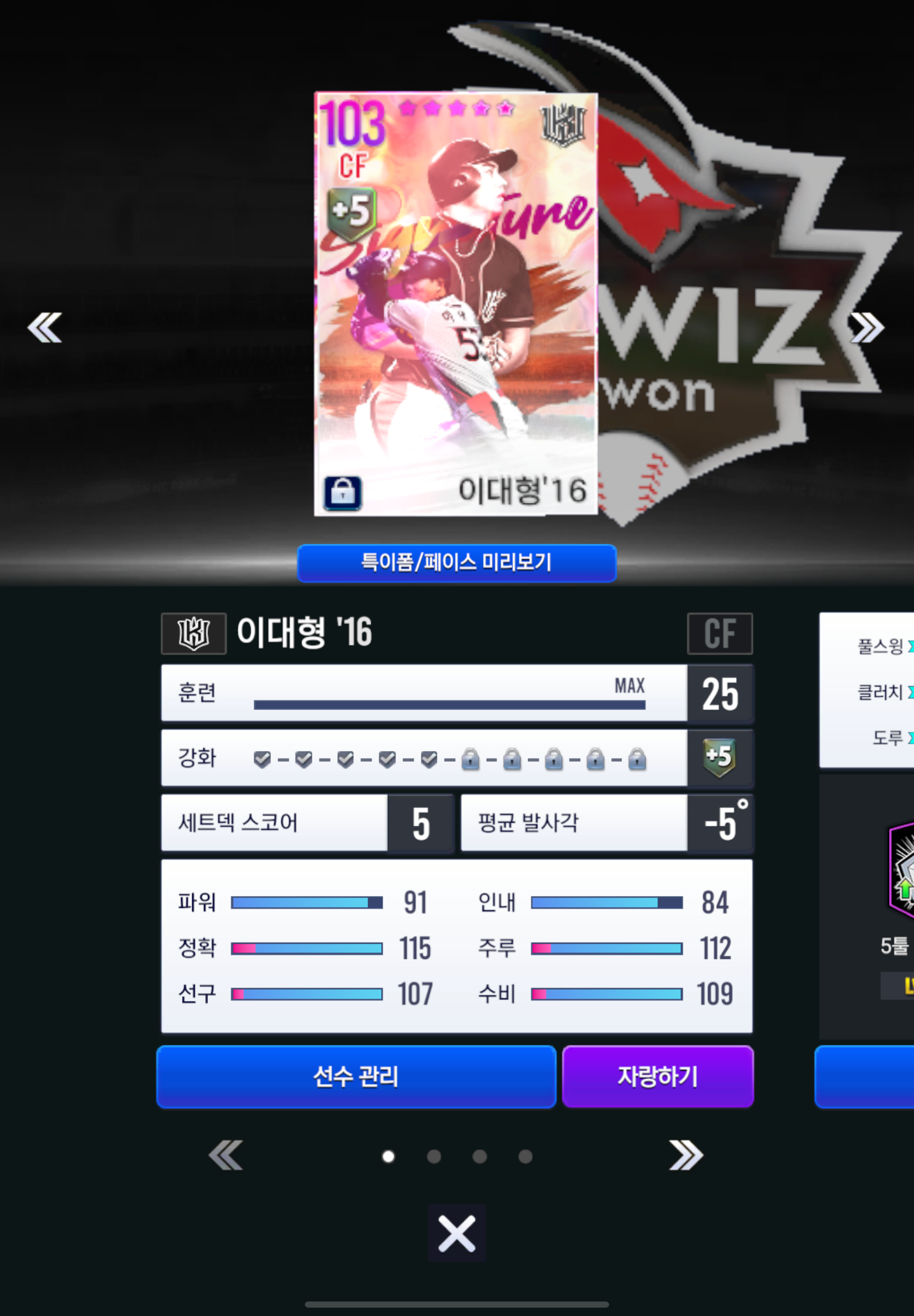 ■ 이대형 발사각 -5도 개좋은듯 능력치 낮은데 은근 이런 플레이 나옵니다