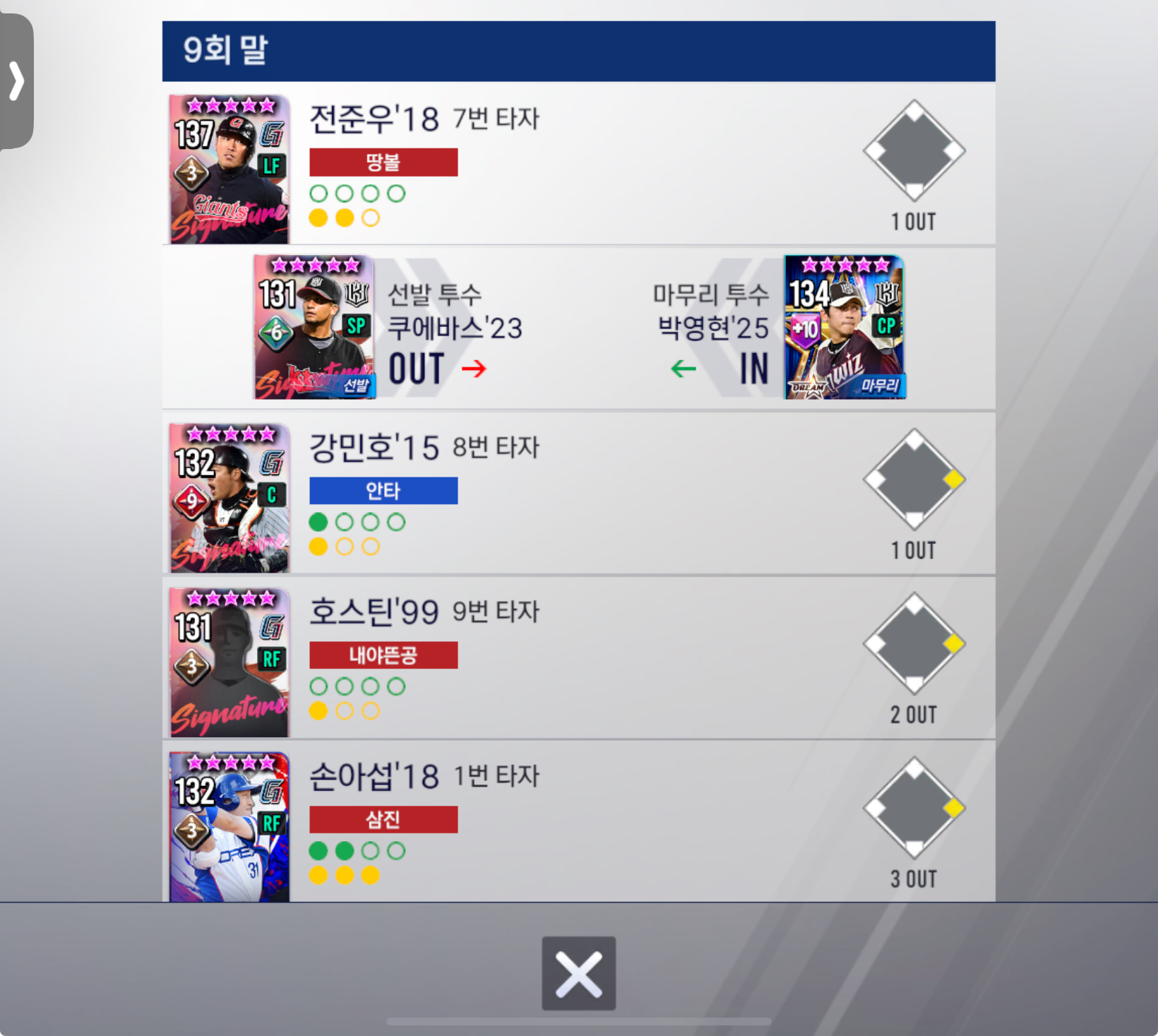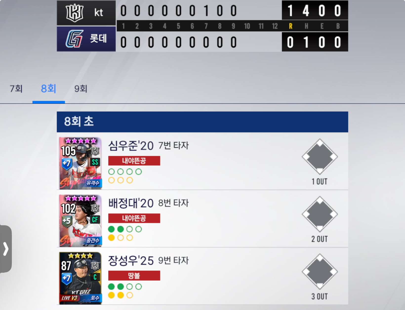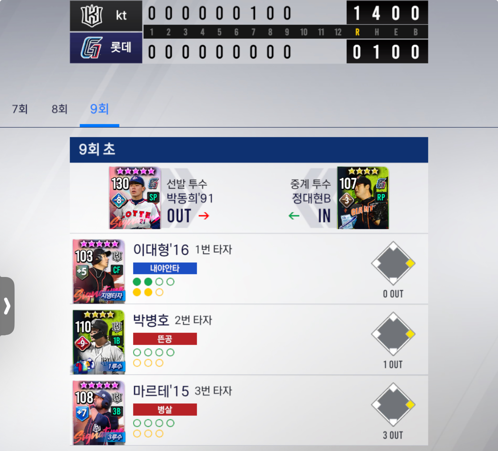 ■ 이대형 발사각 -5도 개좋은듯 능력치 낮은데 은근 이런 플레이 나옵니다