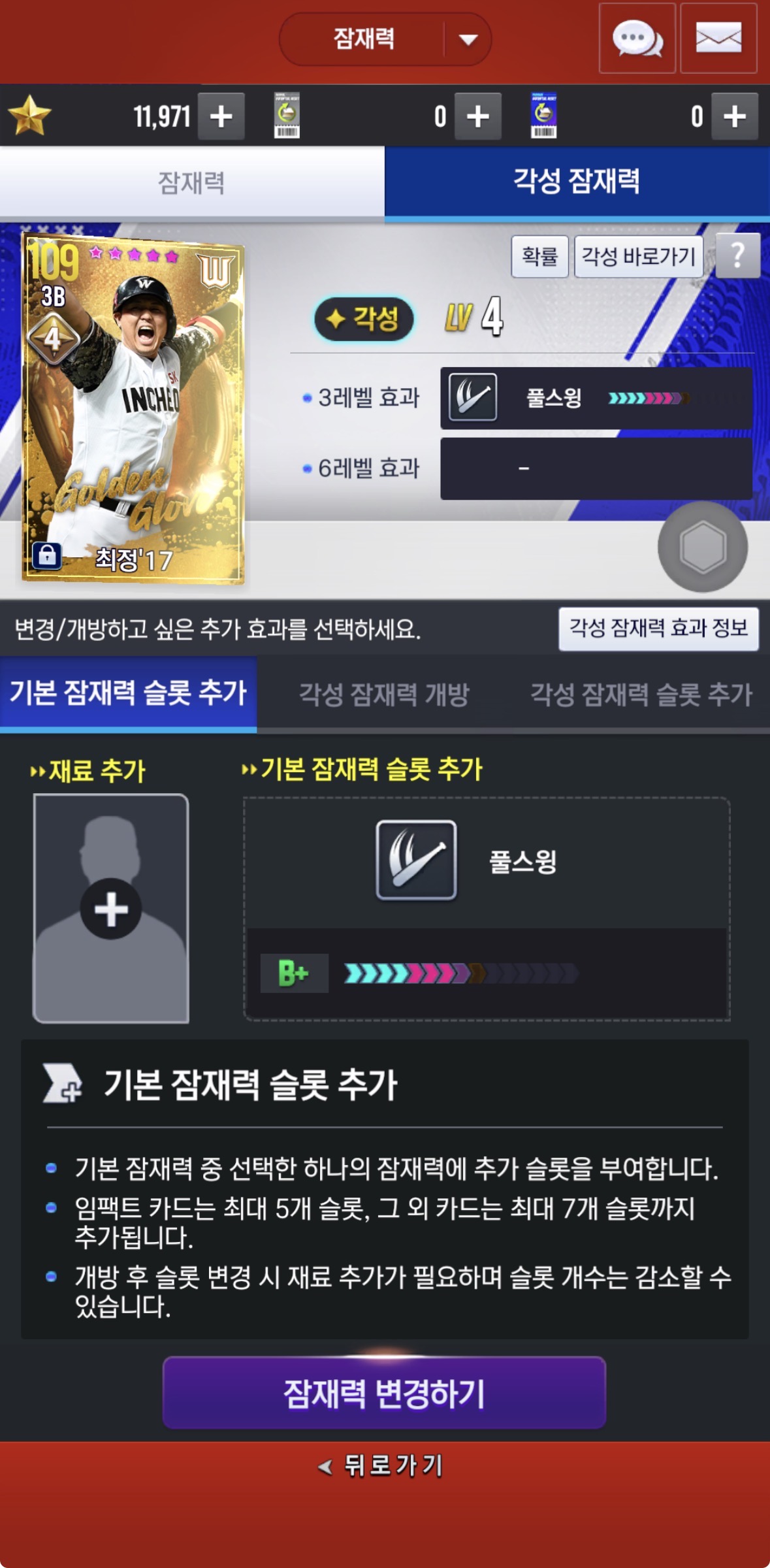 너무 고민돼요… 17최정 풀스윙 각성잠재 1칸 떠서…