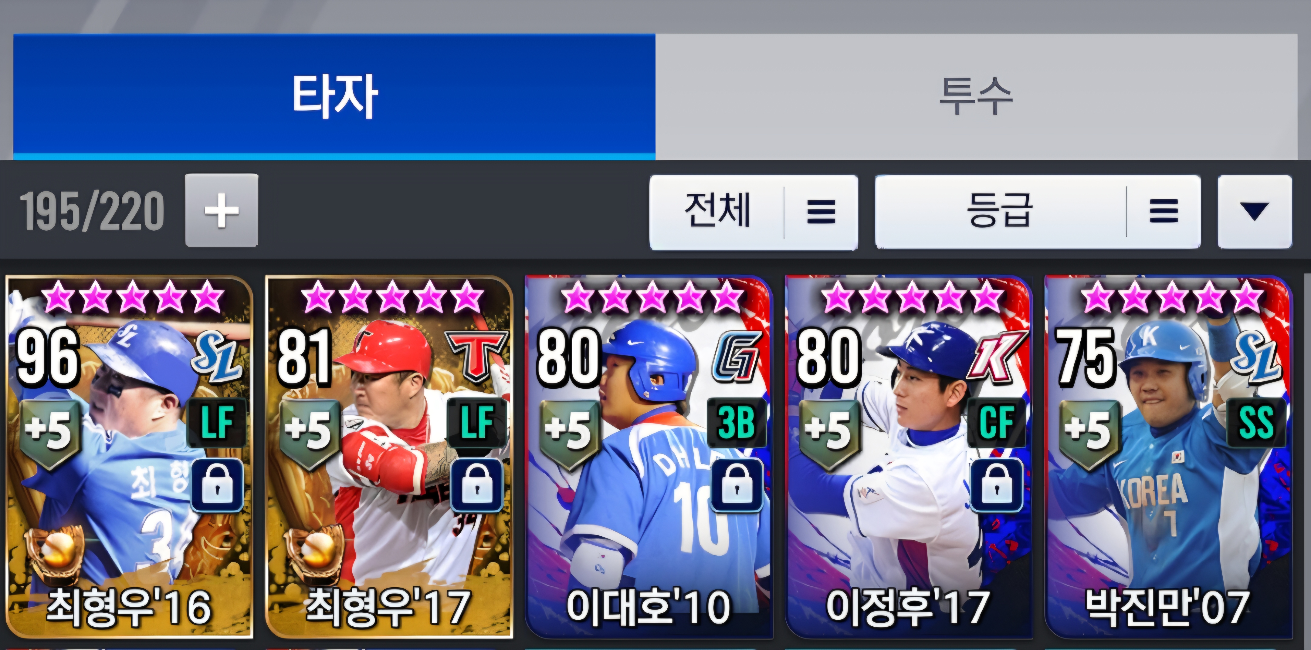 골글 10류현진과 16최형우 중 뭘 먼저 키워야 할까요?