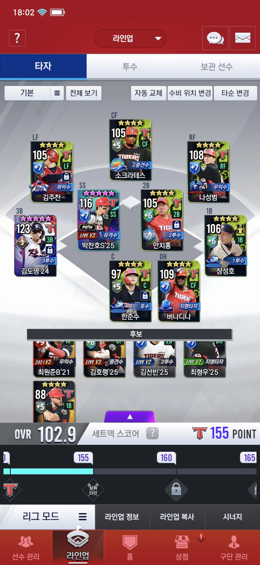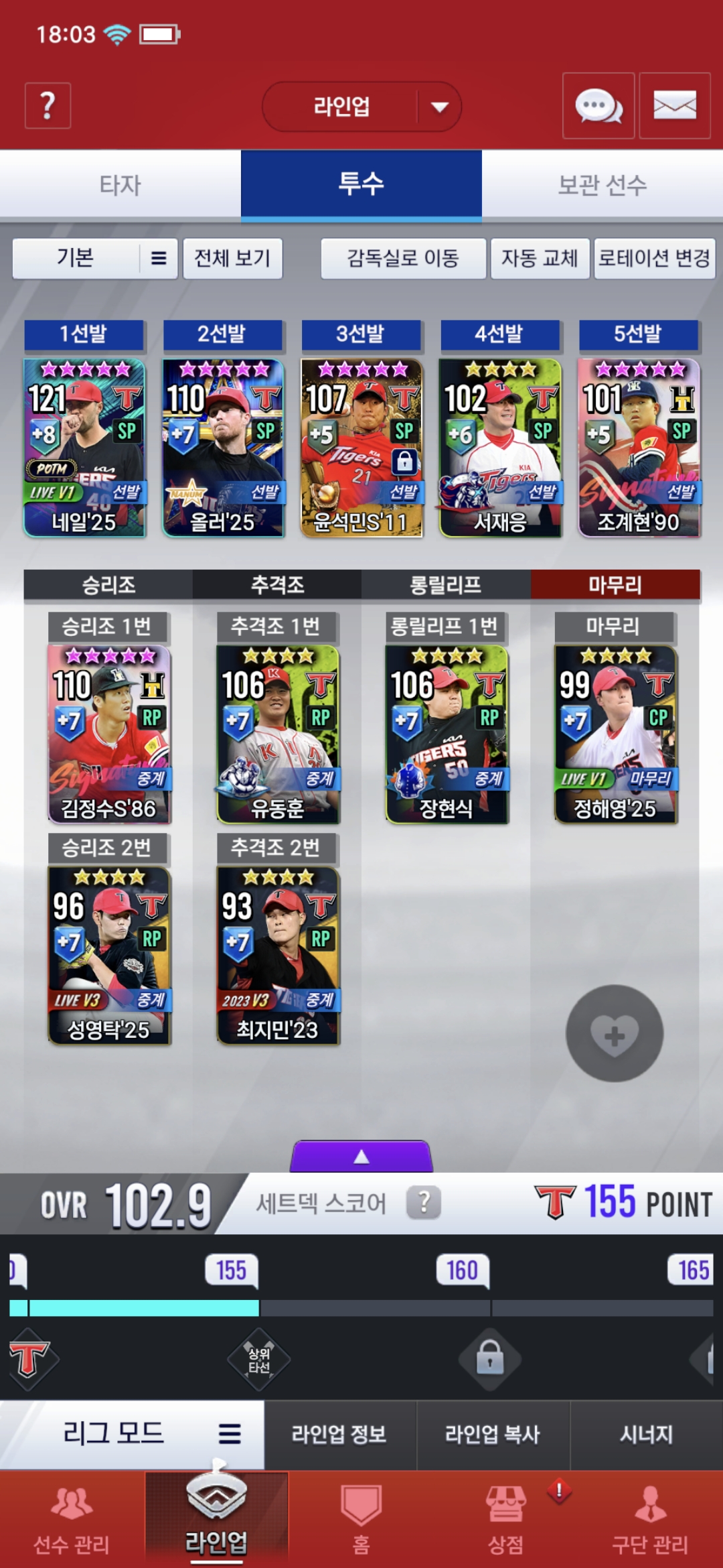 현재 팀 상태입니다.