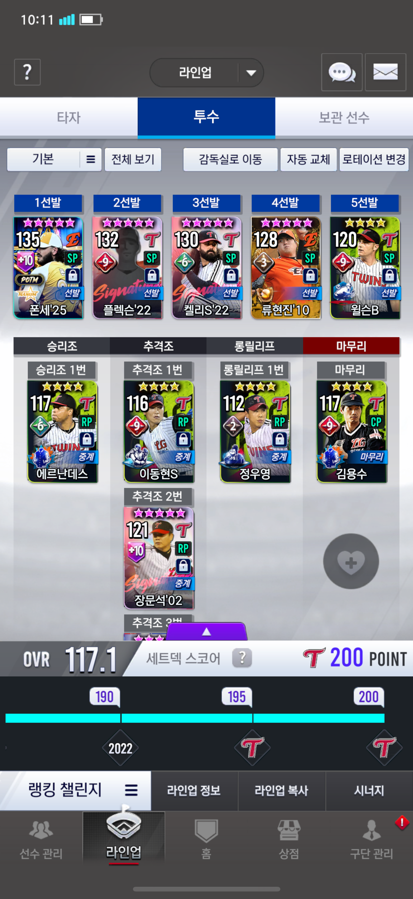 위에는 포수 얼리 9각 박동원 + 3각 골글 류현진(장억ss+)