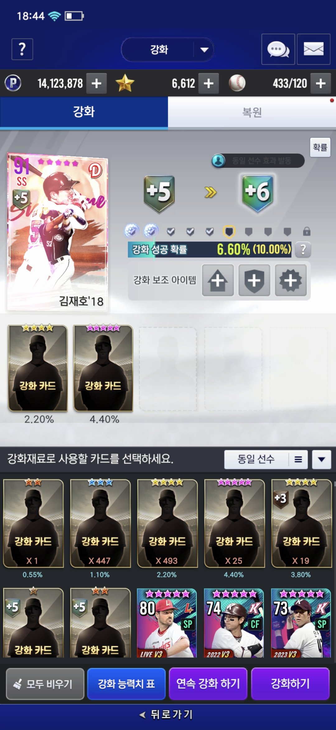 (5성+@강화카드 넣고 고급뱃지넣고 정상적으로 강화해서 나온 보정확률입니다)