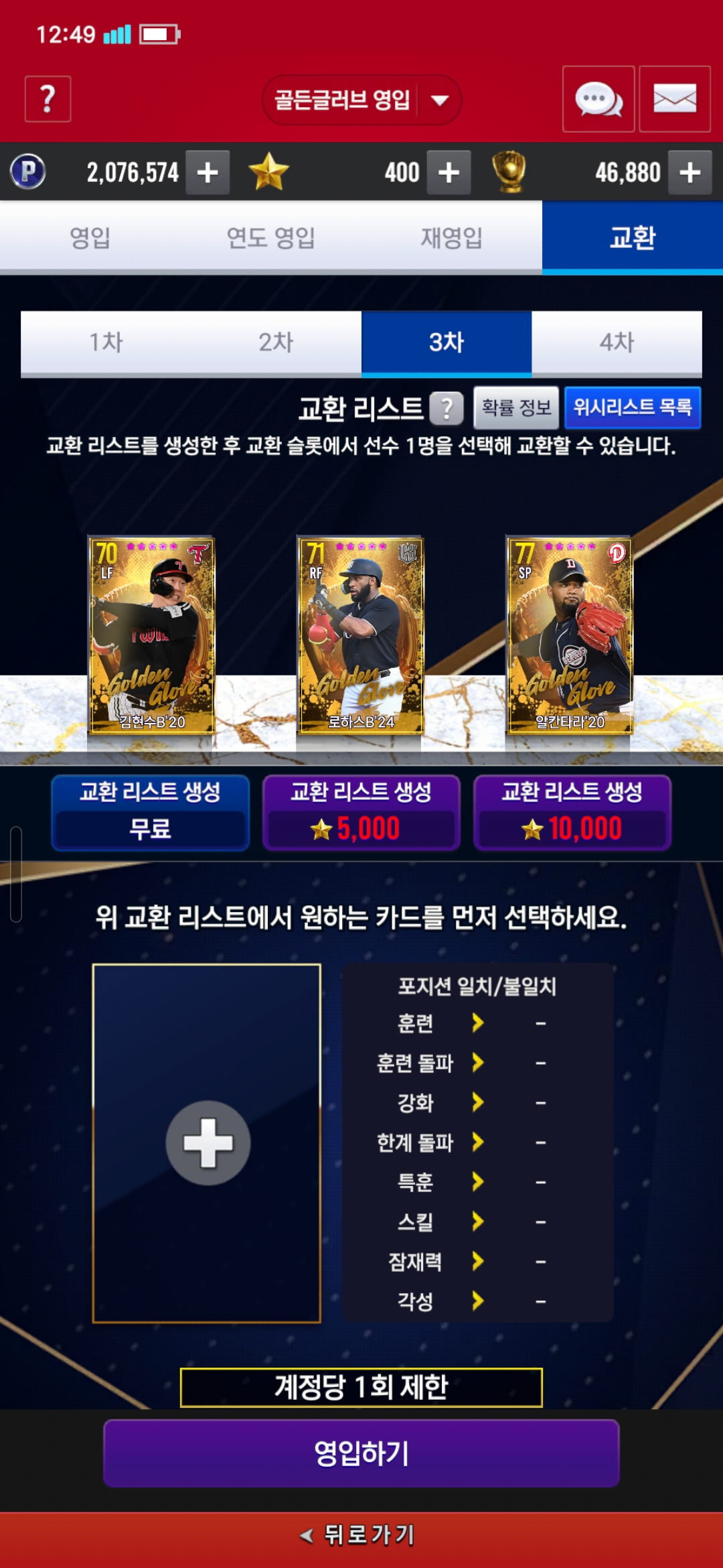 3. 다 버리고 홈런코인으로 대표타자 김주찬 혹은 다른 임팩 좌익수