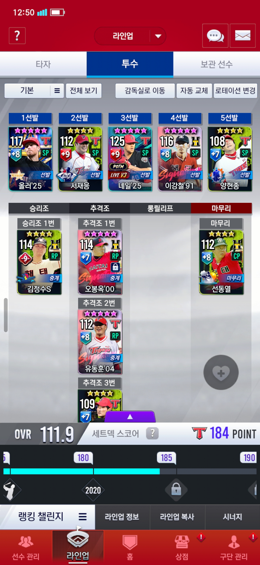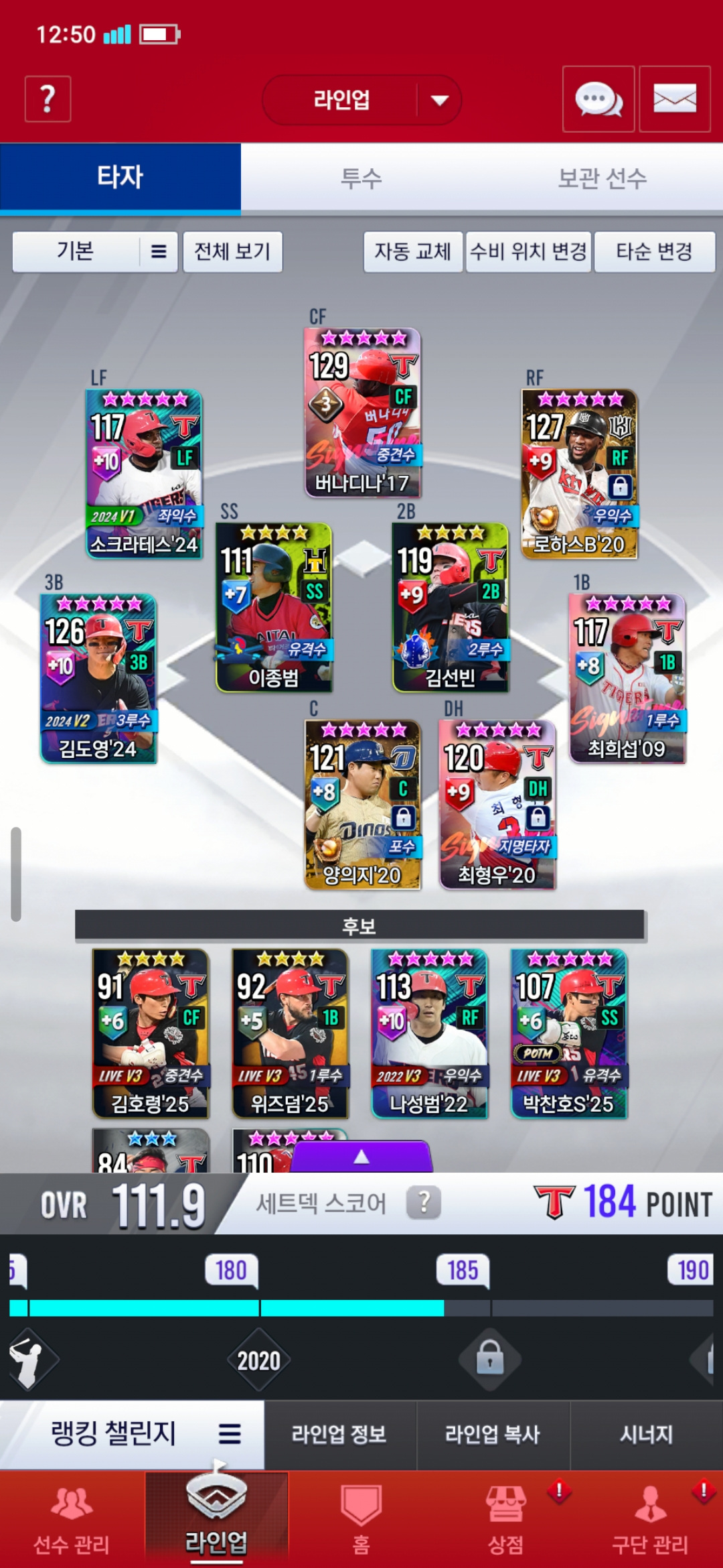 1. 18전준우 + 24로하스 뽑아서 20로하스 1각
