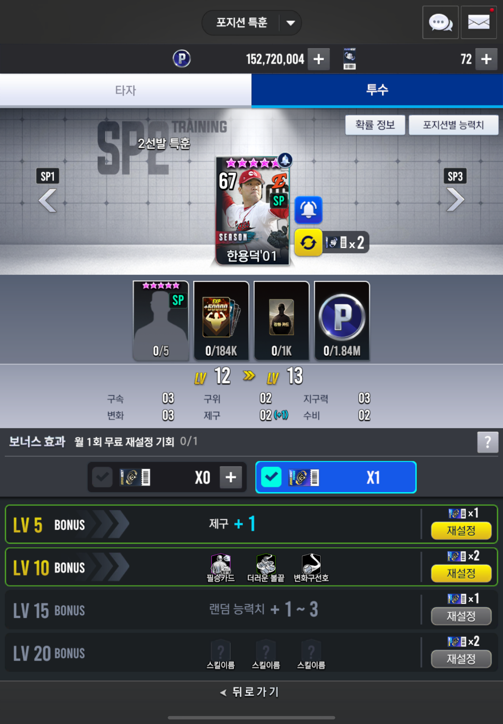 모든 투수 구위 +3을 향해 달려가봅시다