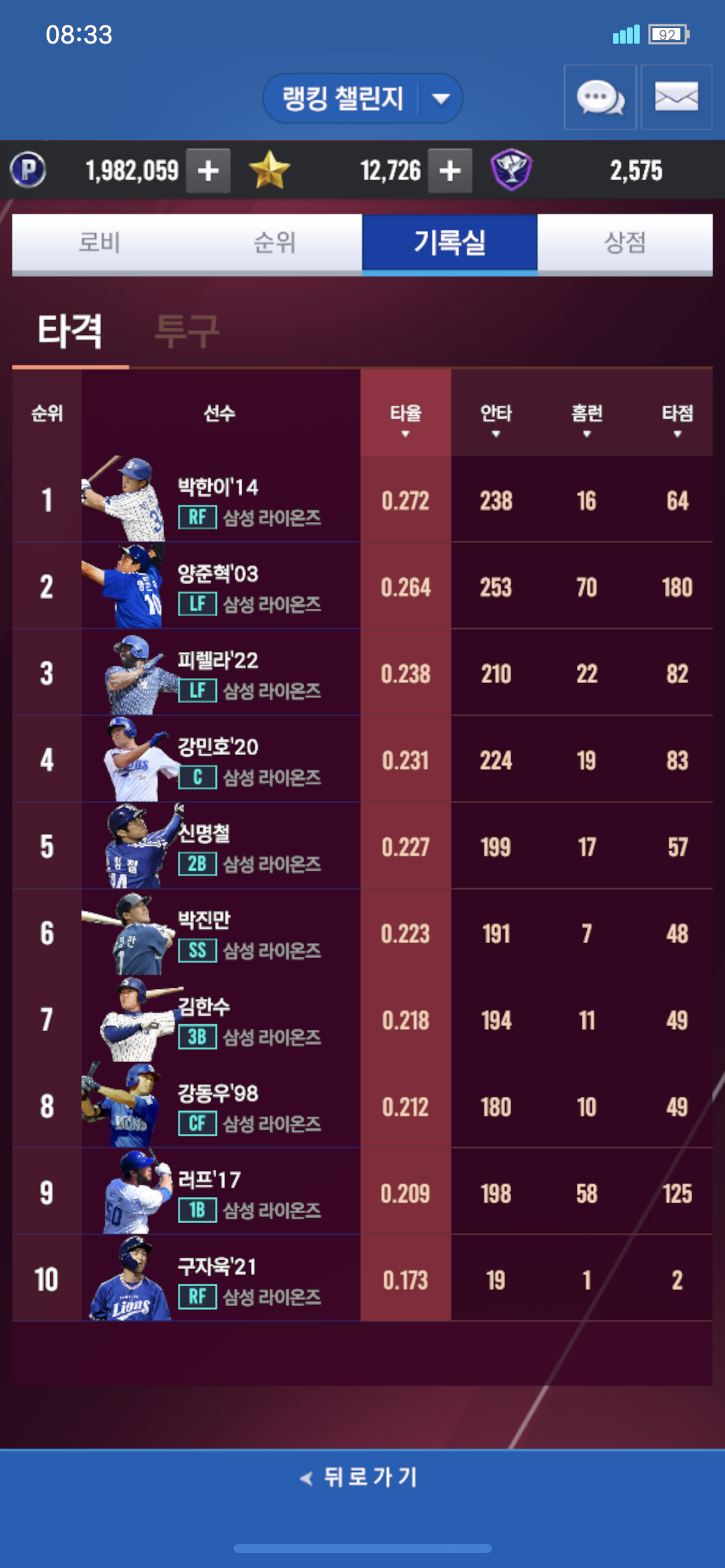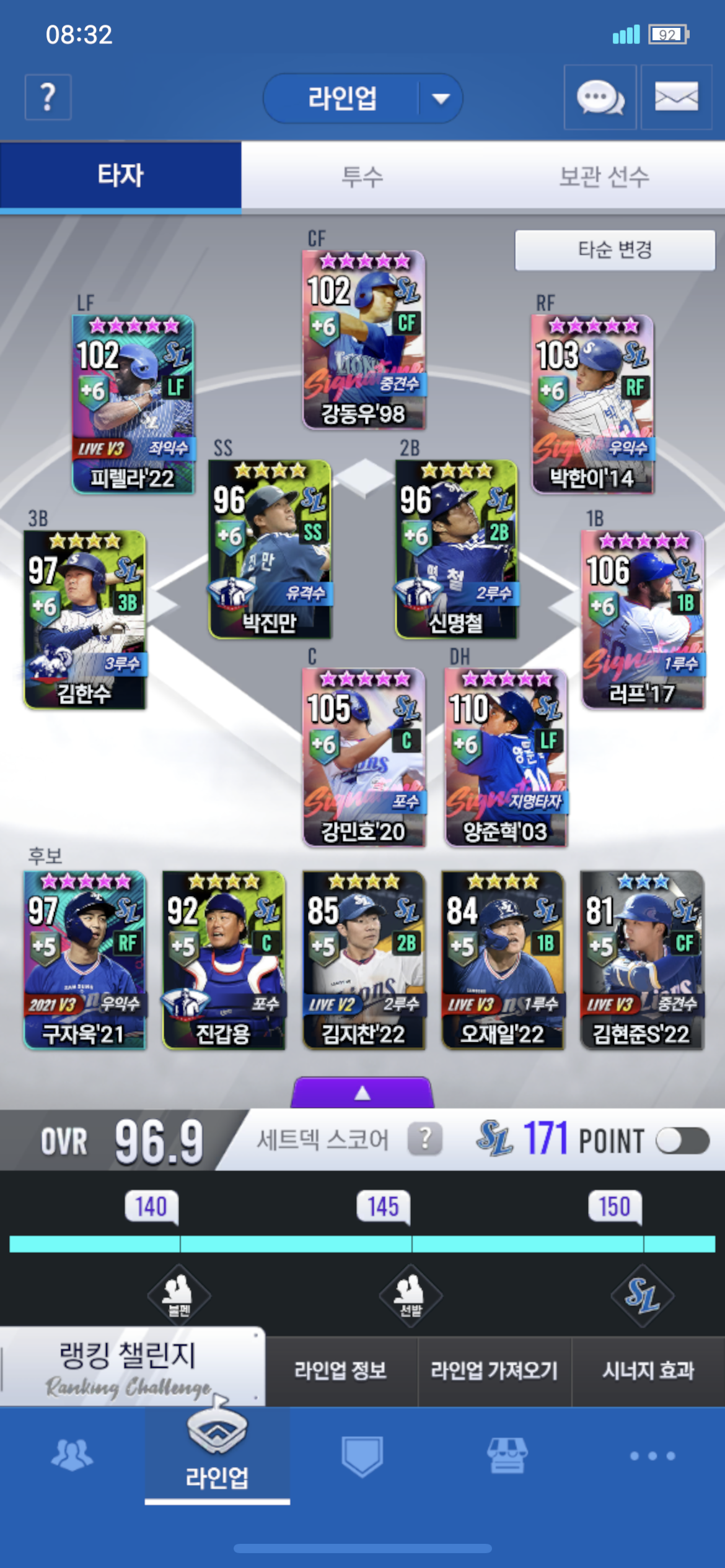 나름 올6강, 훈련재분배, 스킬올노림수인데 현재 랭챌 140경기중 타율이 3할근처인애들조차 하나도없네요ㅠㅠㅠ다른삼성님들은 어떠신지..그리고 해결방법 아시는분ㅠㅠ7강 가는거말고는 답이업나요?