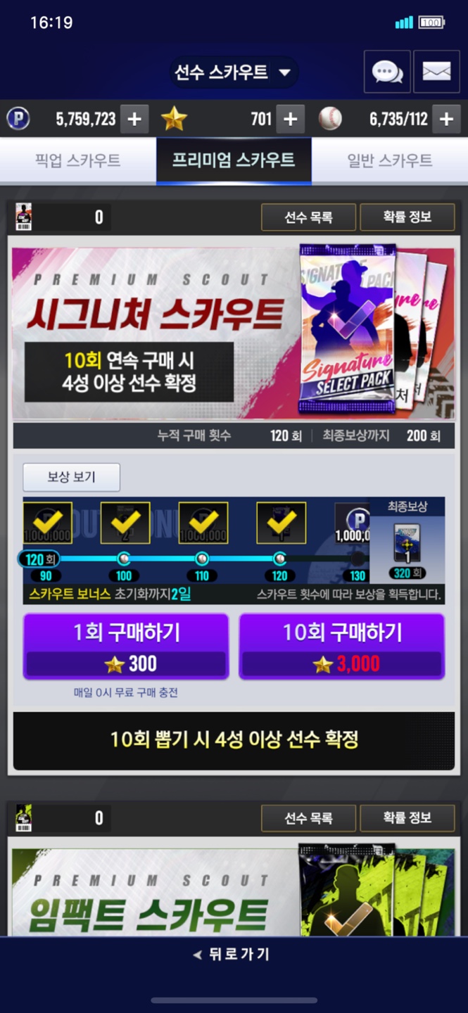 시그니처 120뽑 강민호 2개 중복
