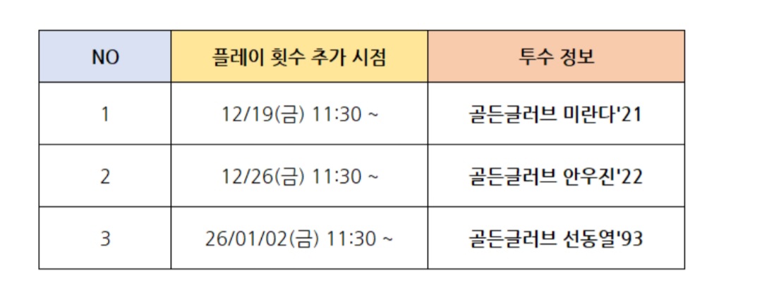 인게임 홈레이벤트 정보에는 5일뒤 투수변경및 횟수추가