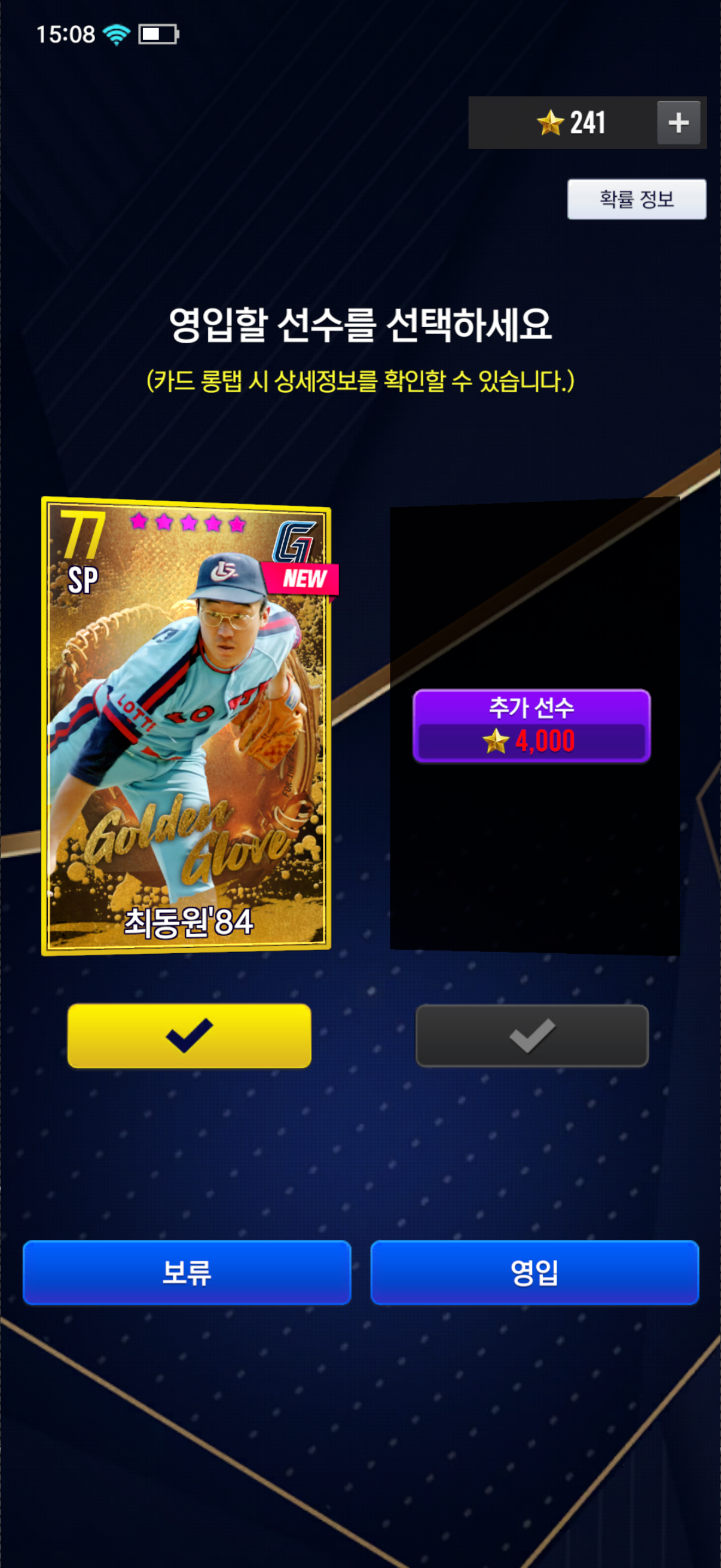 골글 재영입에서 84 최동원 떴는데 먹는 게 좋을까요 아님 옆칸도 열어볼까요? 현재 보유 골글 : (사진 아래)
