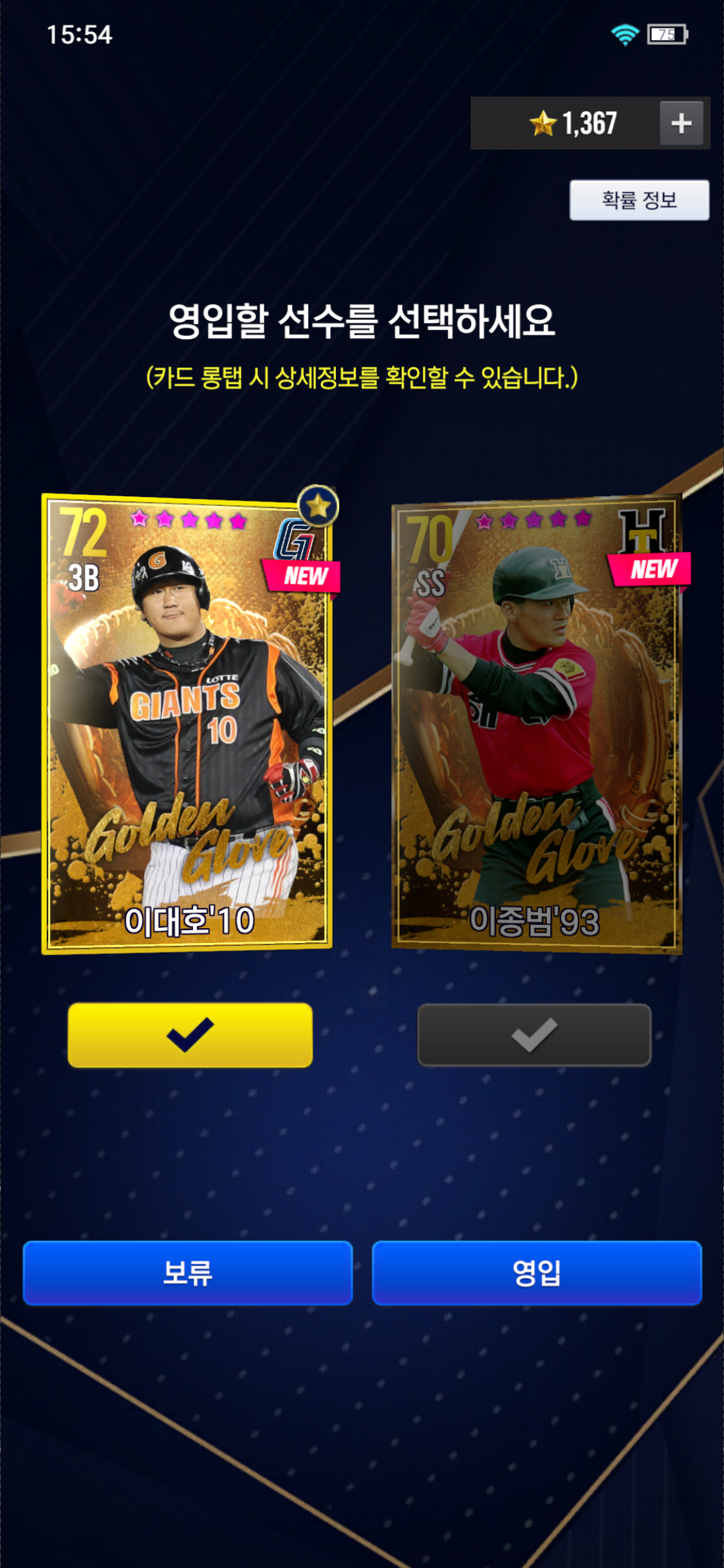 이런 덱인데 보관함에 못쓰는 골글 하나 있습니다. 이대호 뽑아서 쓸까요 아니면 이종범 뽑아서 초이스팩 돌릴까요?