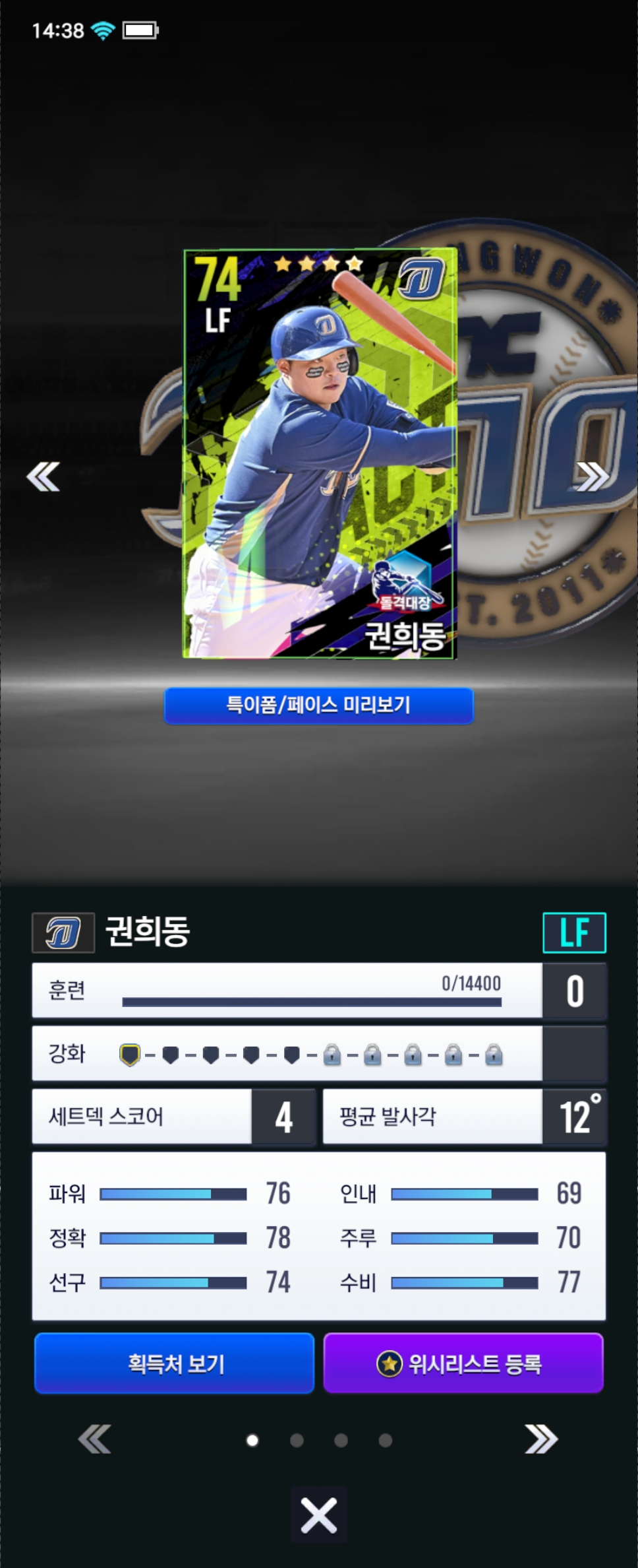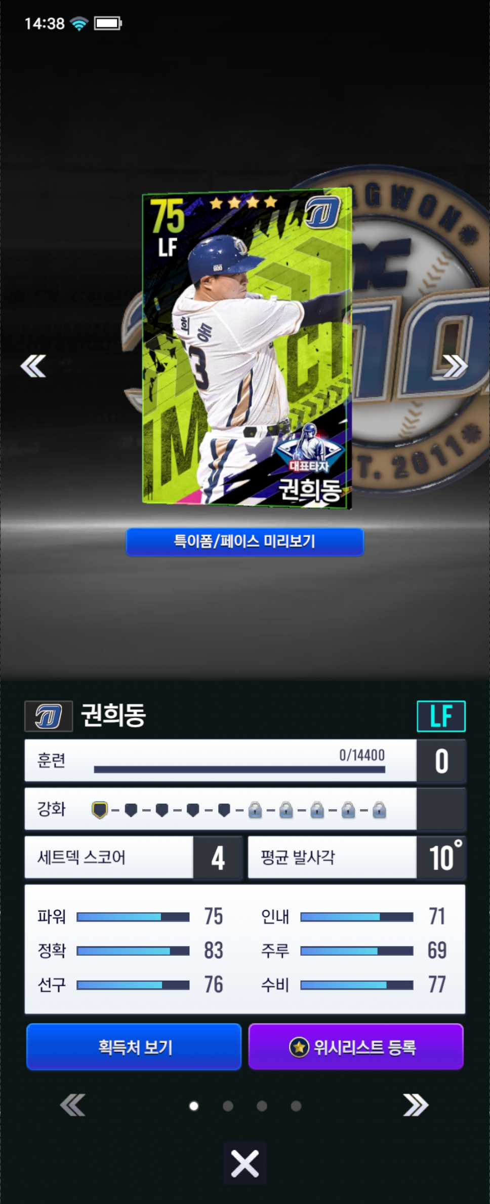 - 2. 돌격대장 권희동 ( 파워 76 / 정확 78 / 발사각 12)
