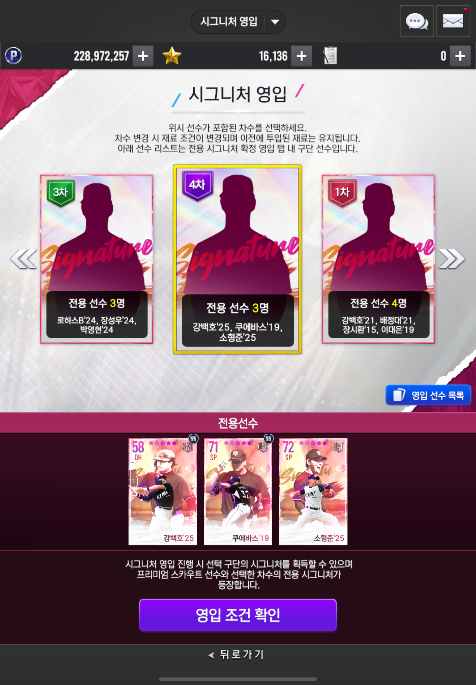 추가로 뽑아야하는 시그 영입재료도 아낄 수 있기 때문입니다