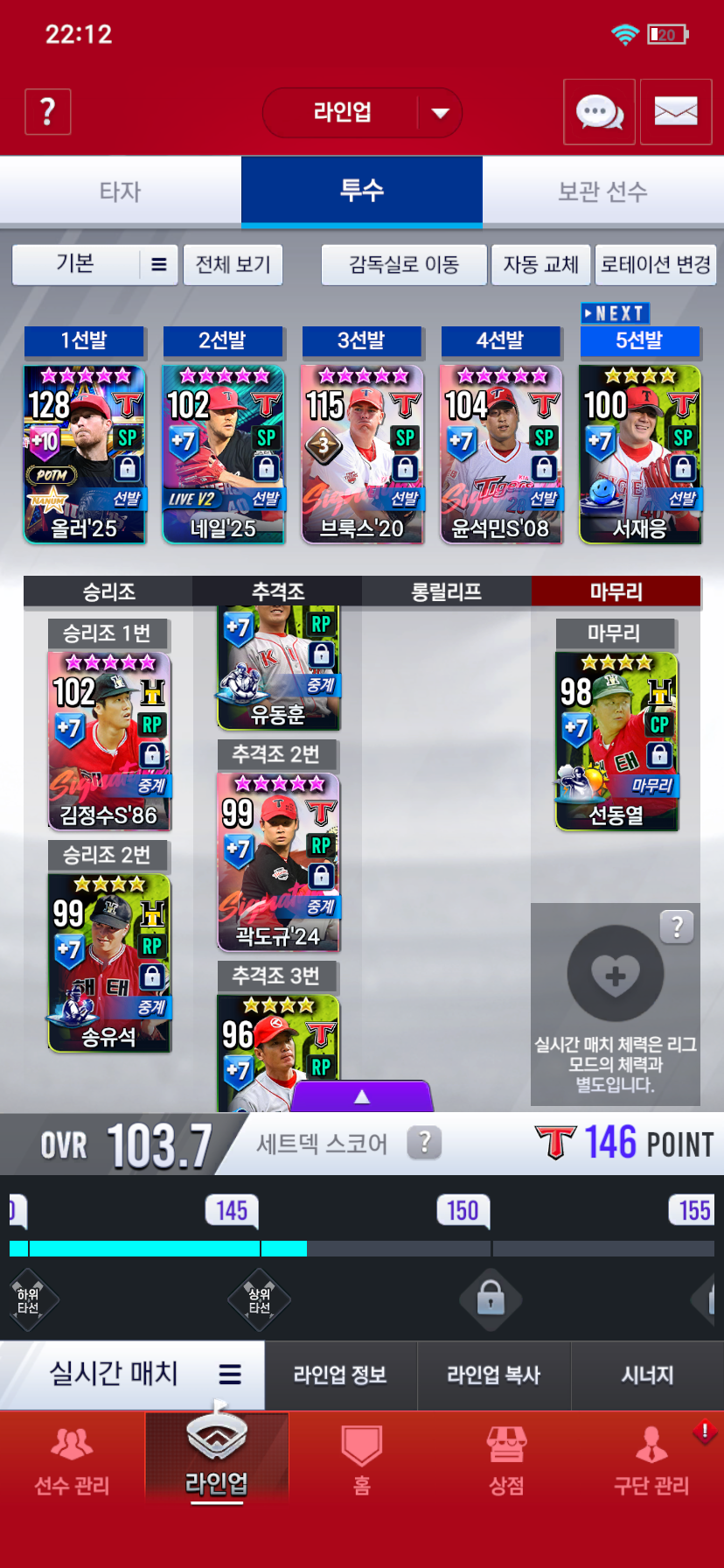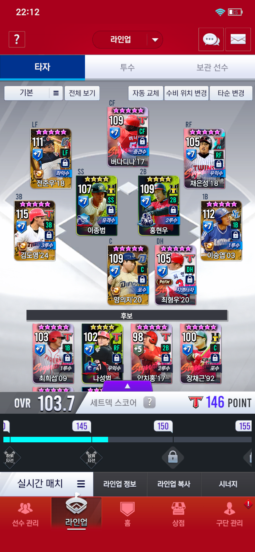 약 9달 정도 된 무과금 덱입니다. 시선팩으로 18버나디나 먹어서 계승 할 예정이고, 나중에 베테랑 서재응, 25 시그 네일 순으로 먹을 생각인데 덱 방향성좀 알려주세요
