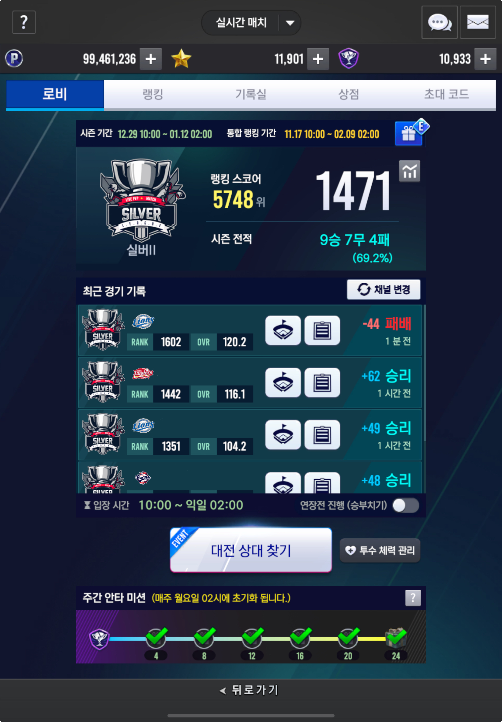 한 주의 마무리 왕족 실시간대전 근황, 막판 정말 너무 재미있었습니다 감사합니다