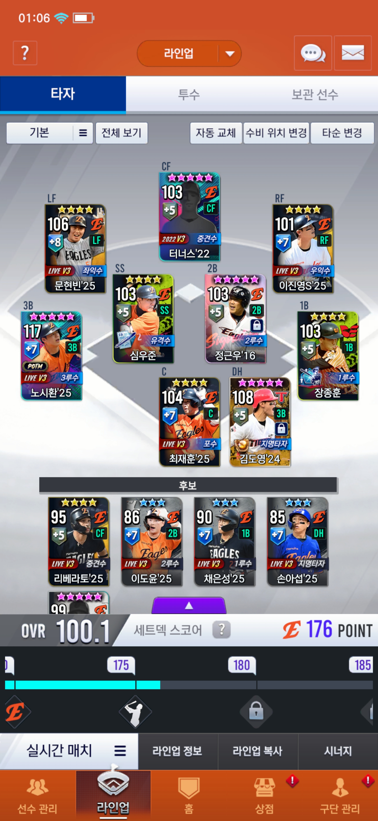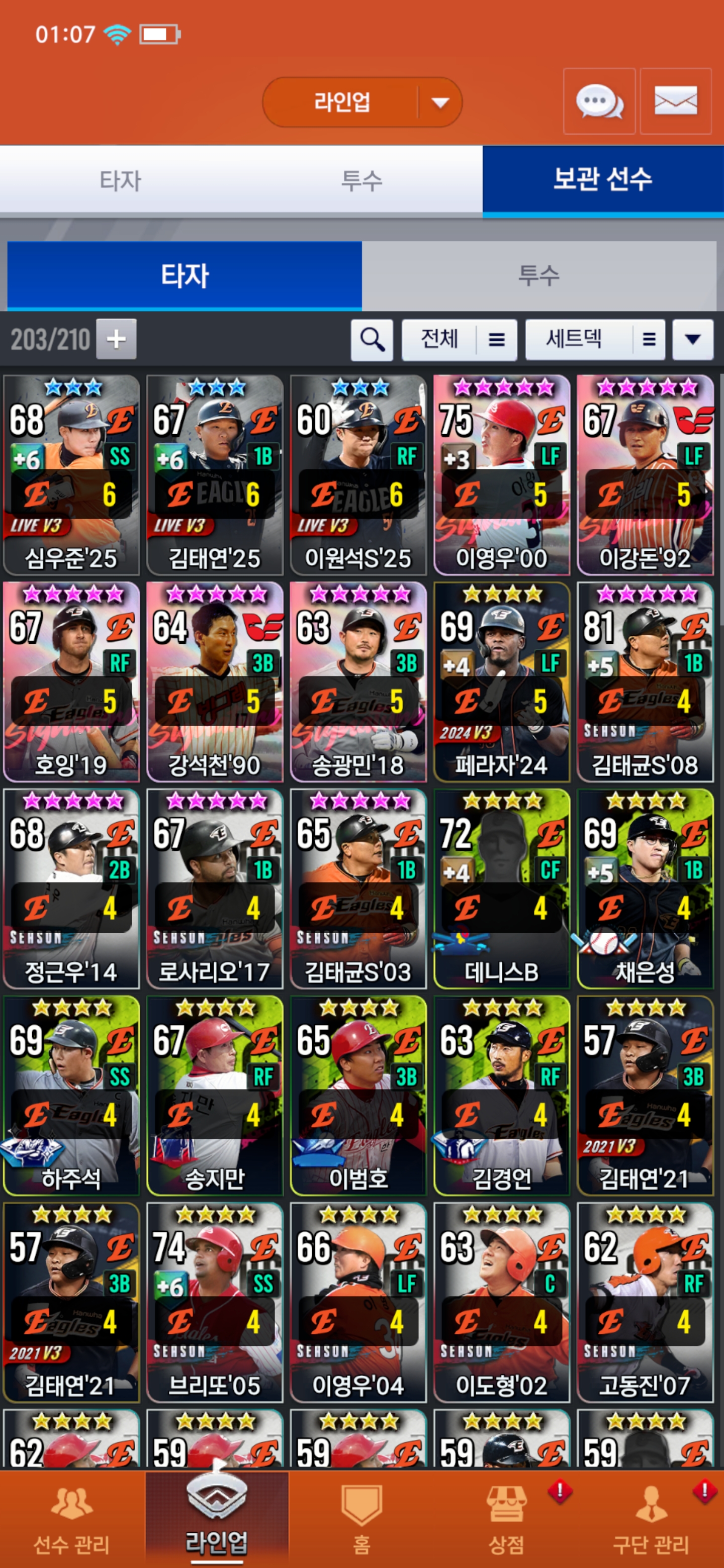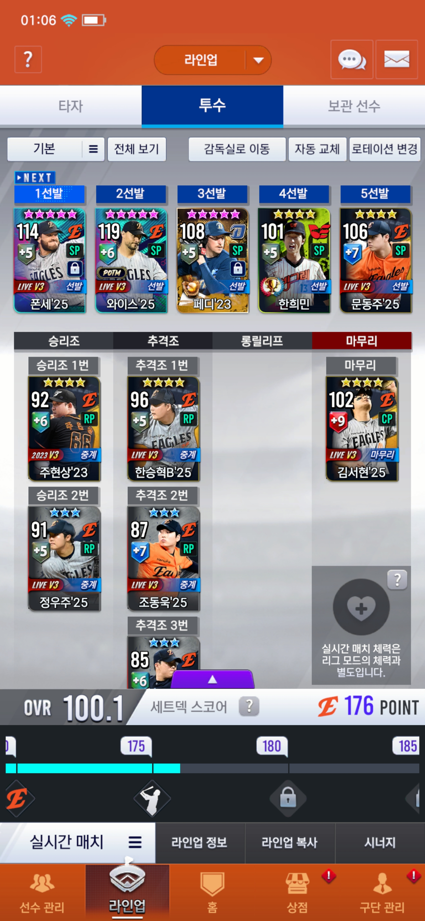 라이브 선택팩은 류현진 골라서 선발로 기용할지 벤치에 하주석 채울지 고민입니다..