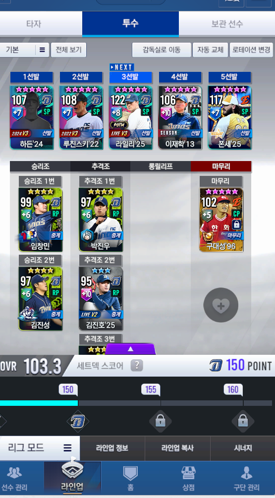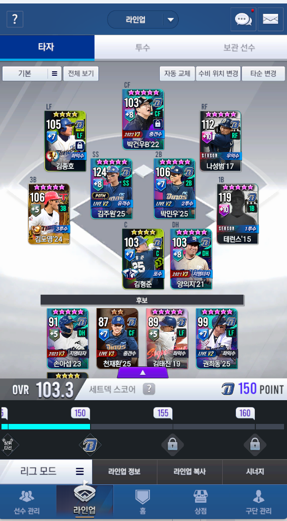 3.현재 우익수에 나성범을 쓰고 있는데 나성범을 계속 쓸지 20로하스를 써야할지 조언 부탁 드립니다.