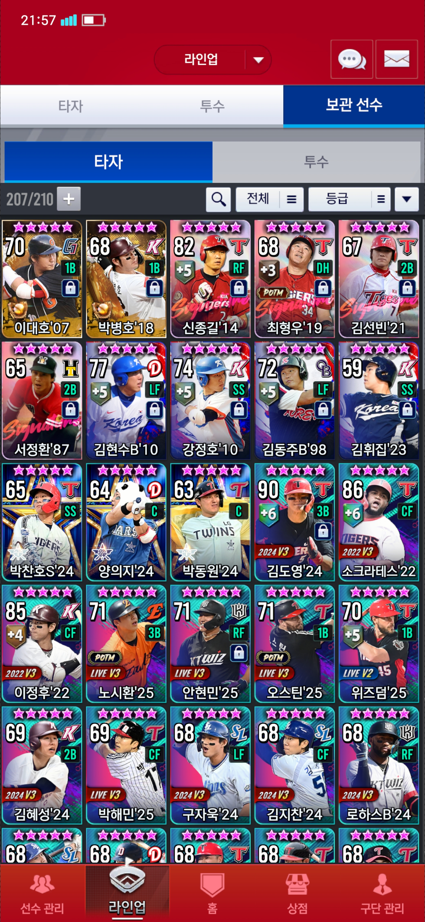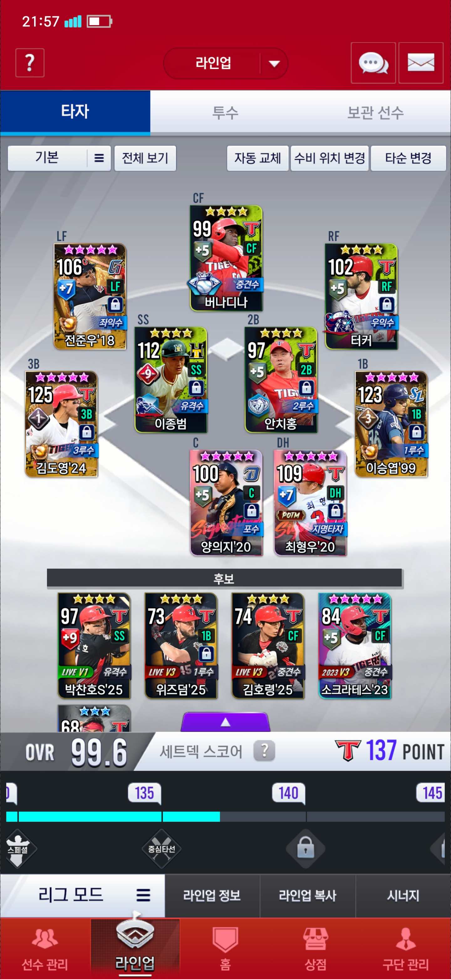 18박뱅을 먹었는데 99승엽이 3각이라 빼기 쫌 그렇네요. 20기아 맞추려고 했는데 20형우 빼고 지타로 써야할까요?