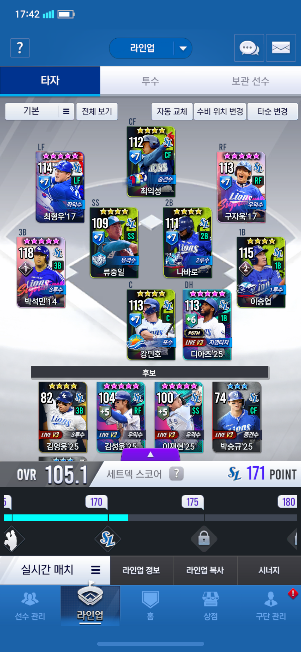 좌익은 18골재환 지타는 18골병호 넣을거라서 시그는 18구자욱 먹을까 생각중인데 다른 방안도 있을까요